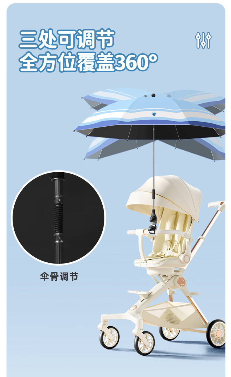 • 商品名称:美度(MAYDU)婴儿车遮阳伞三轮车手推儿童车伞遛娃神器防晒太阳雨伞M901蜜柚黄 M901/把