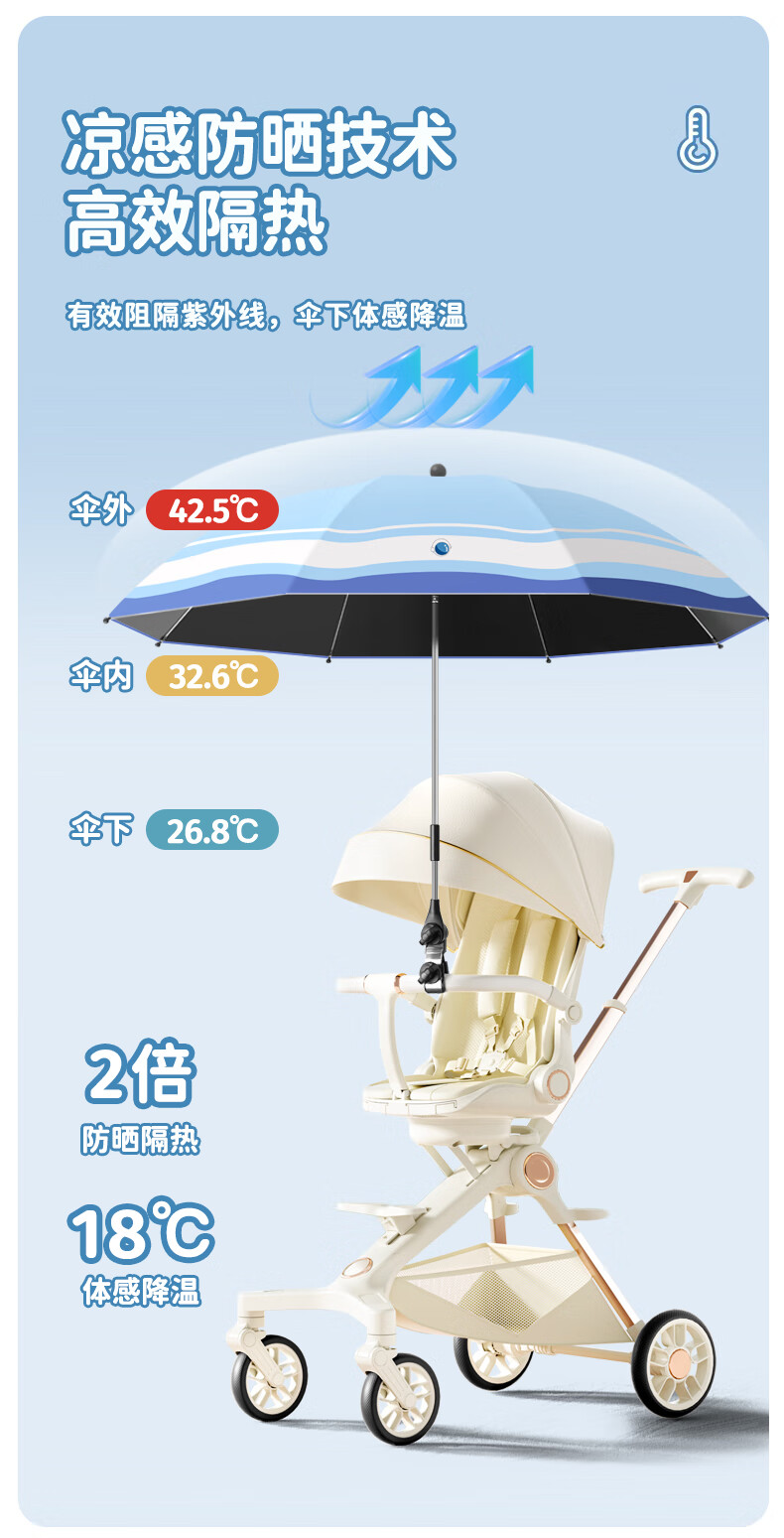 商品名称: 美度(MAYDU)婴儿车遮阳伞三轮车手推儿童车伞遛娃神器防晒太阳雨伞M901蜜柚黄 M901/把