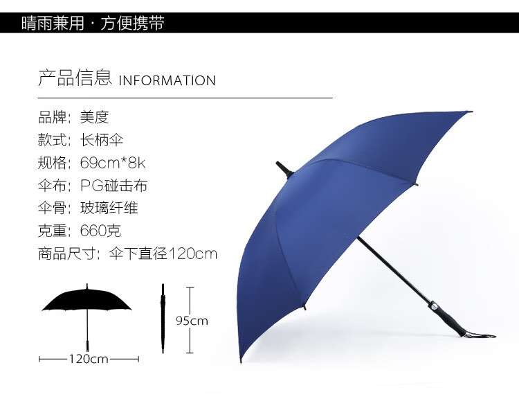 商品名称: 美度(MAYDU)自动商务晴雨伞长柄雨伞加大双人伞 M1125黑色 M1125/把