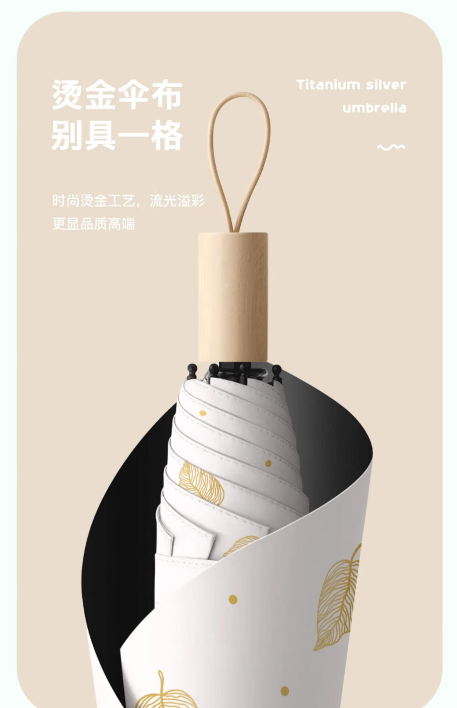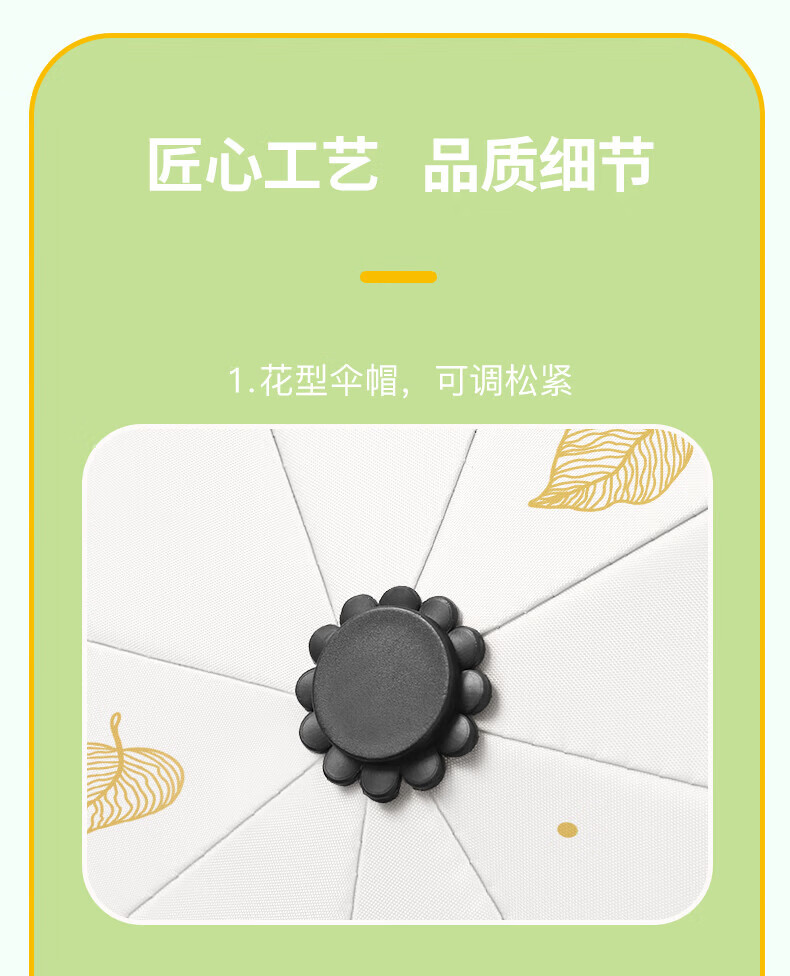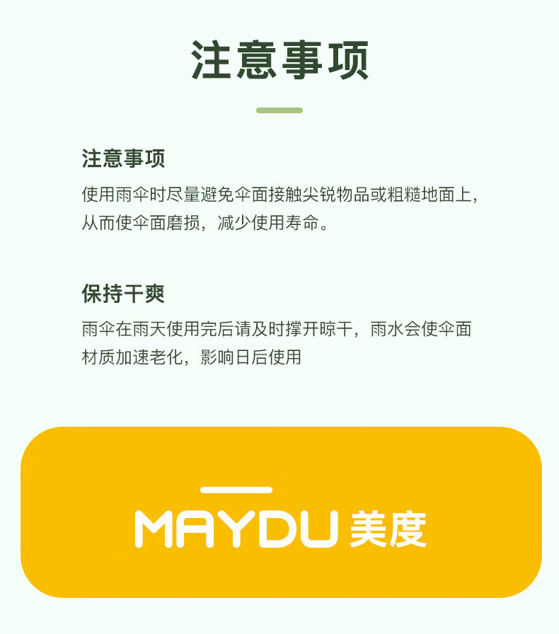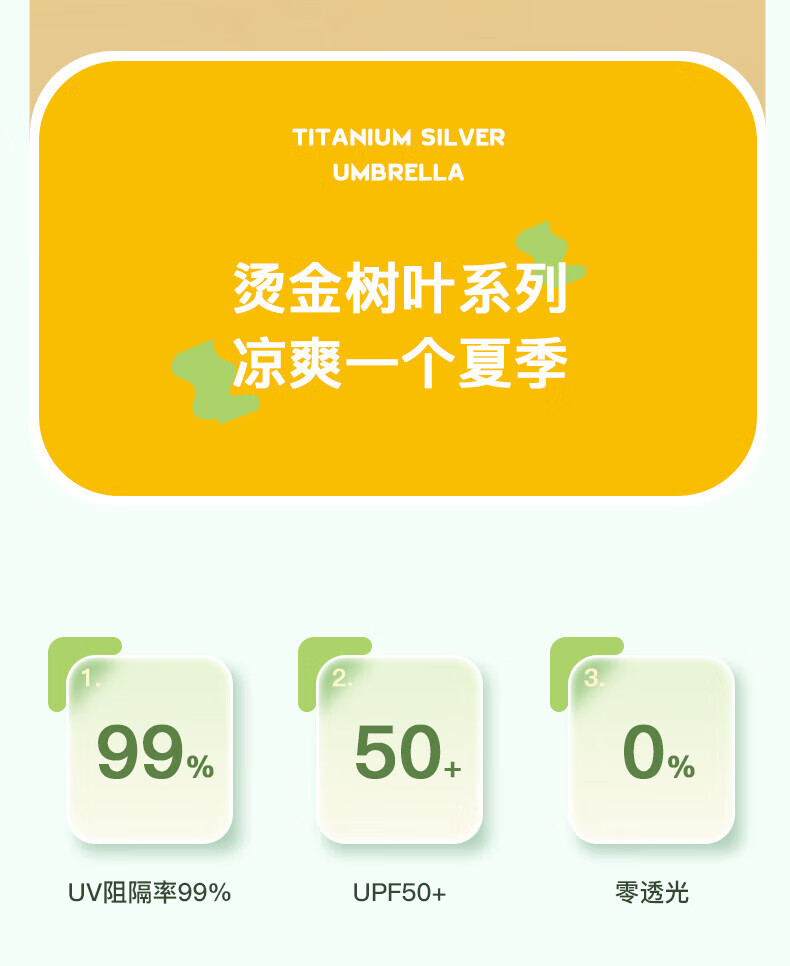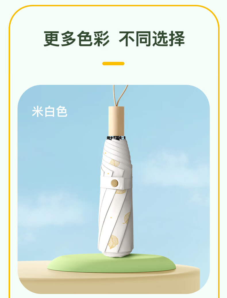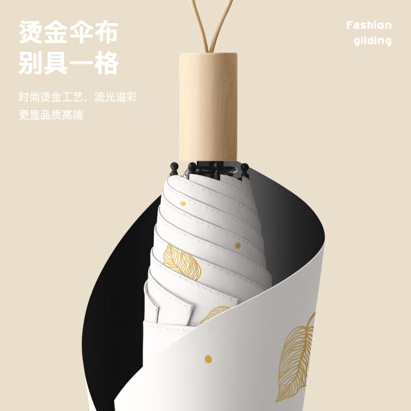 • 商品名称:美度(MAYDU)黑胶遮阳伞榆树叶烫金印花三折木柄晴雨两用伞 M3122冷香绿 M3122/把