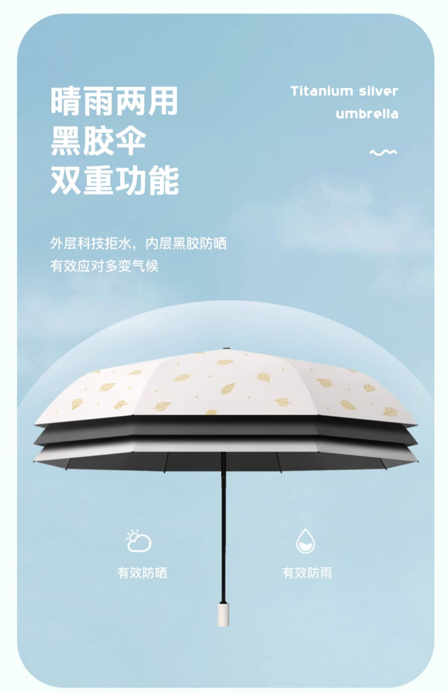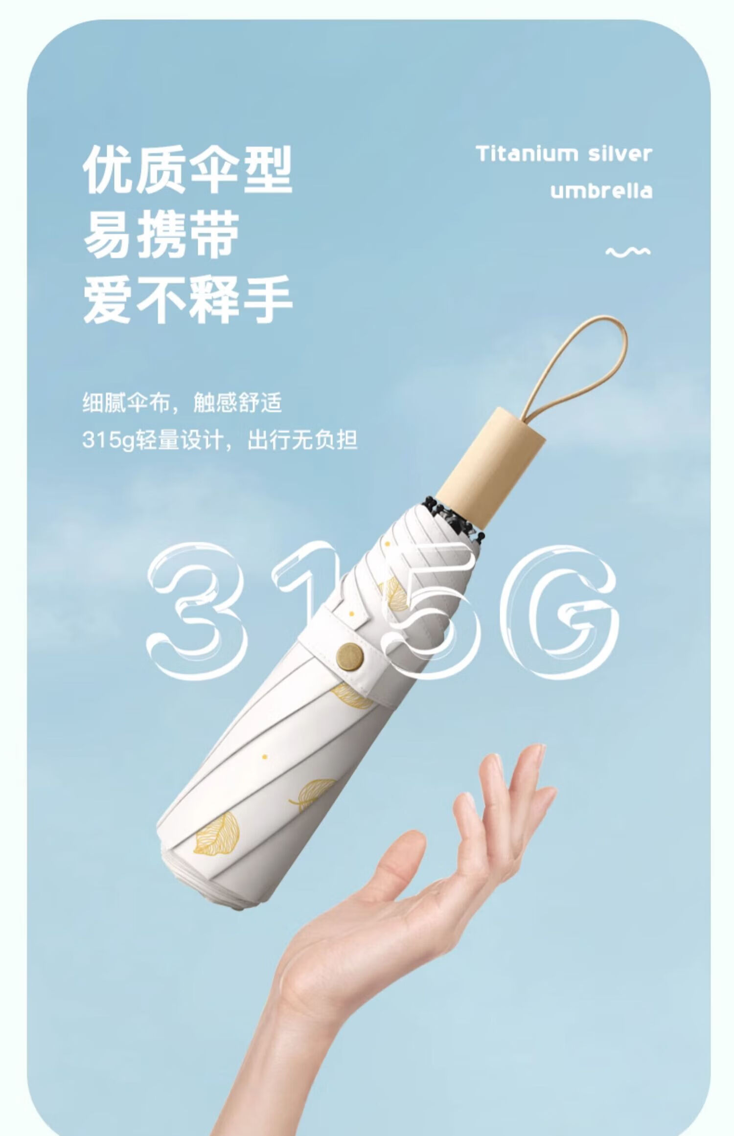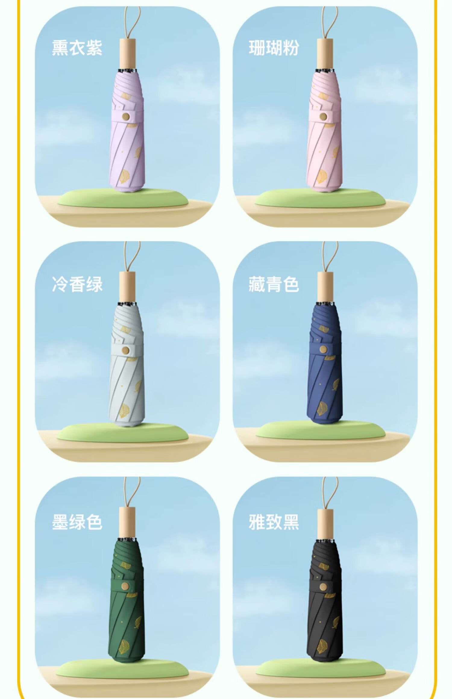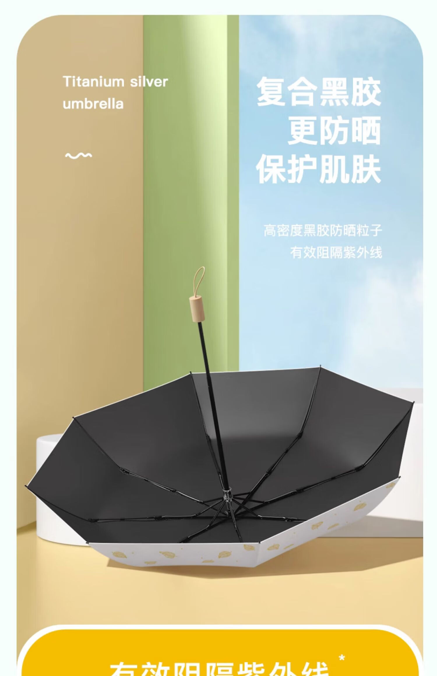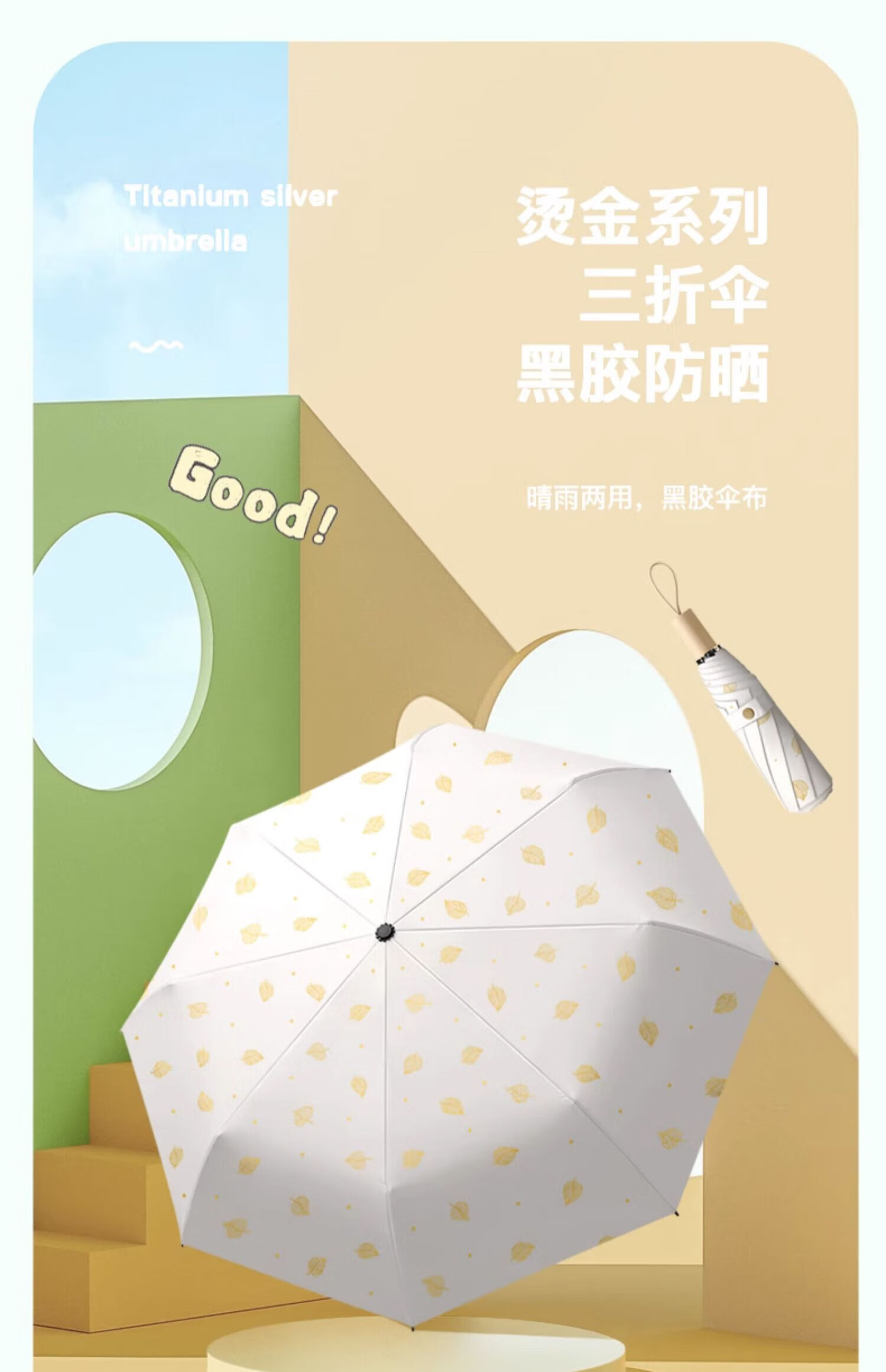 • 商品名称:美度(MAYDU)黑胶遮阳伞榆树叶烫金印花三折木柄晴雨两用伞 M3122冷香绿 M3122/把