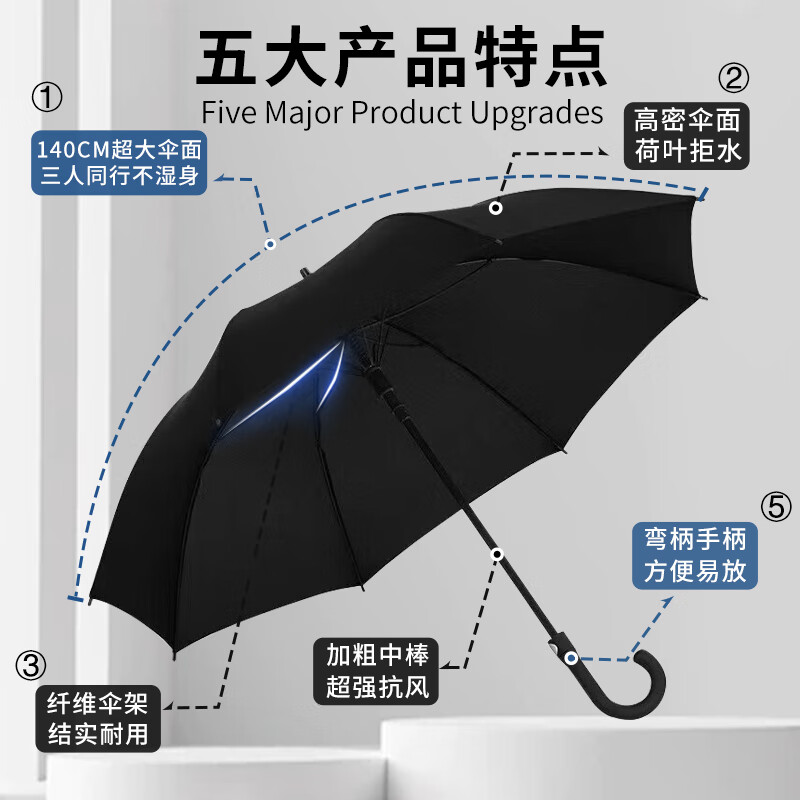 • 商品名称:米波迪(Meebordi)雨伞大号加固加厚结实抗风大暴雨长柄抗风暴8骨半自动弯手柄定制 001/把