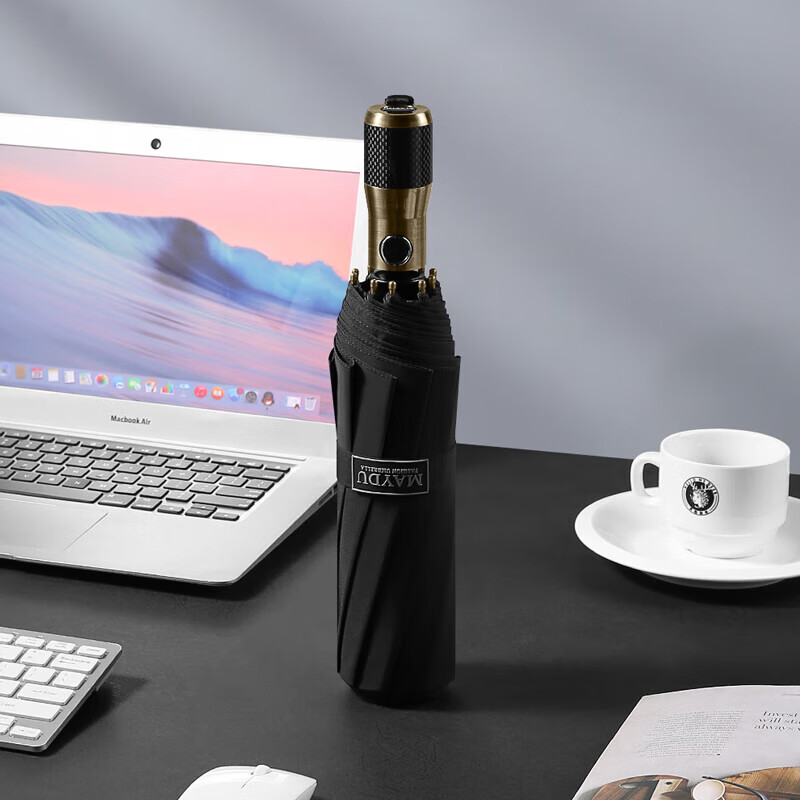 美度(MAYDU)碳纤柄男士商务折叠伞10骨防紫外线三折双人伞 M3386商务黑 M3386/把