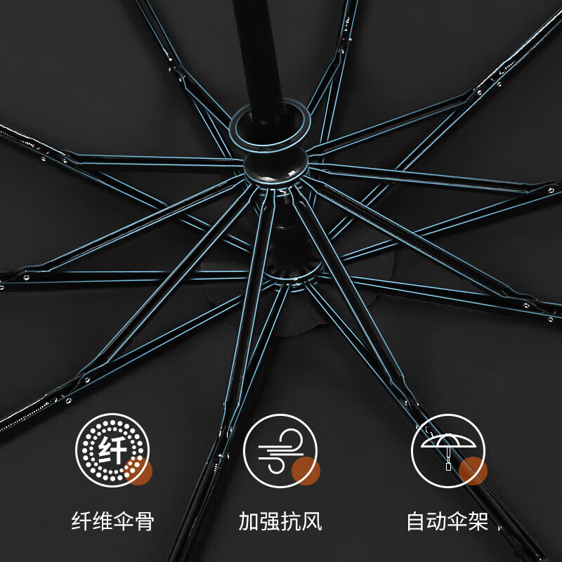 生活日用  > 日用杂货  > 雨伞雨具  >  美度/MAYDU  >  美度(MAYDU)碳纤柄男士商务折叠伞10骨防紫外线三折双人伞 M3386商务黑 M3386/把