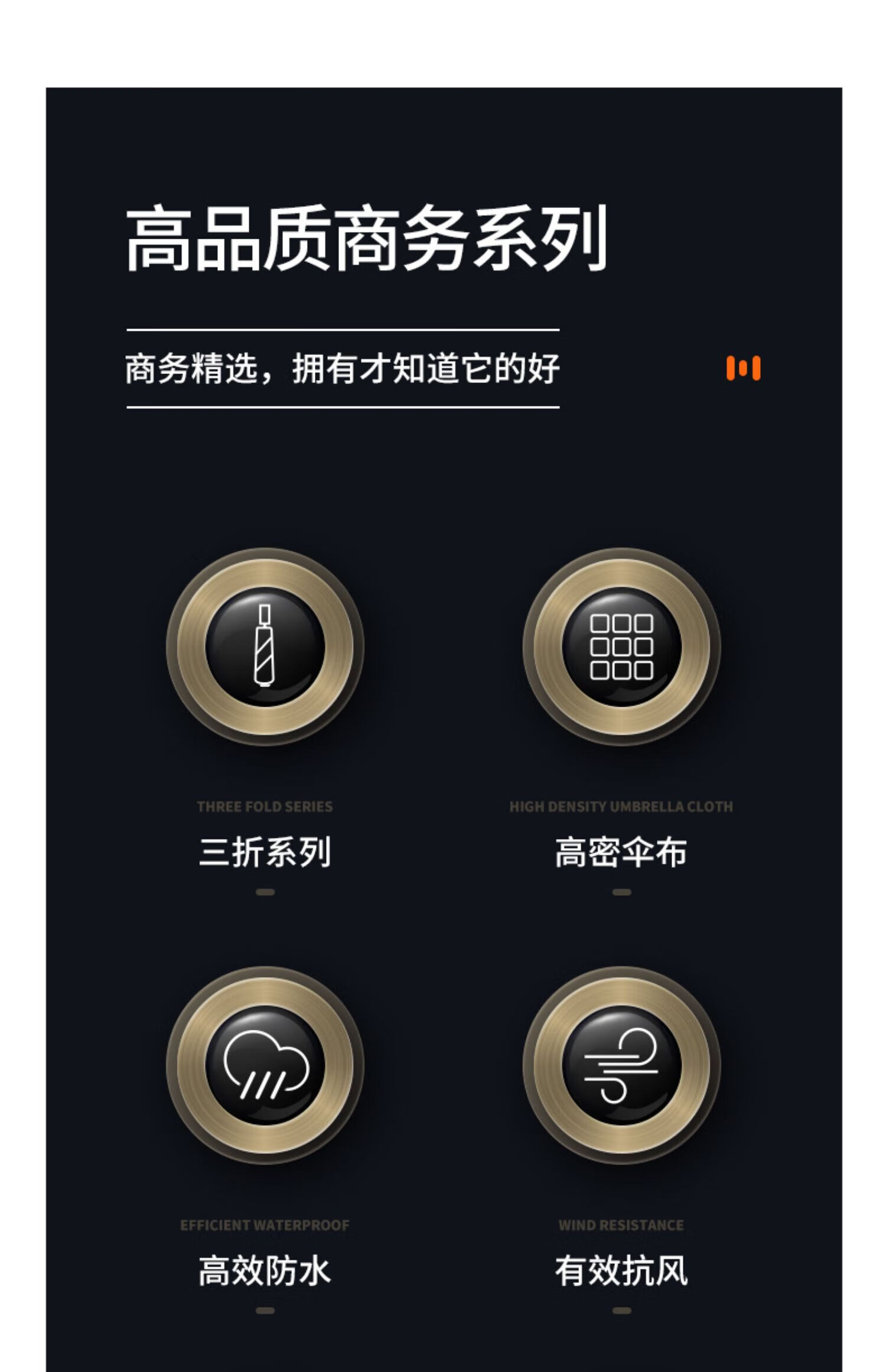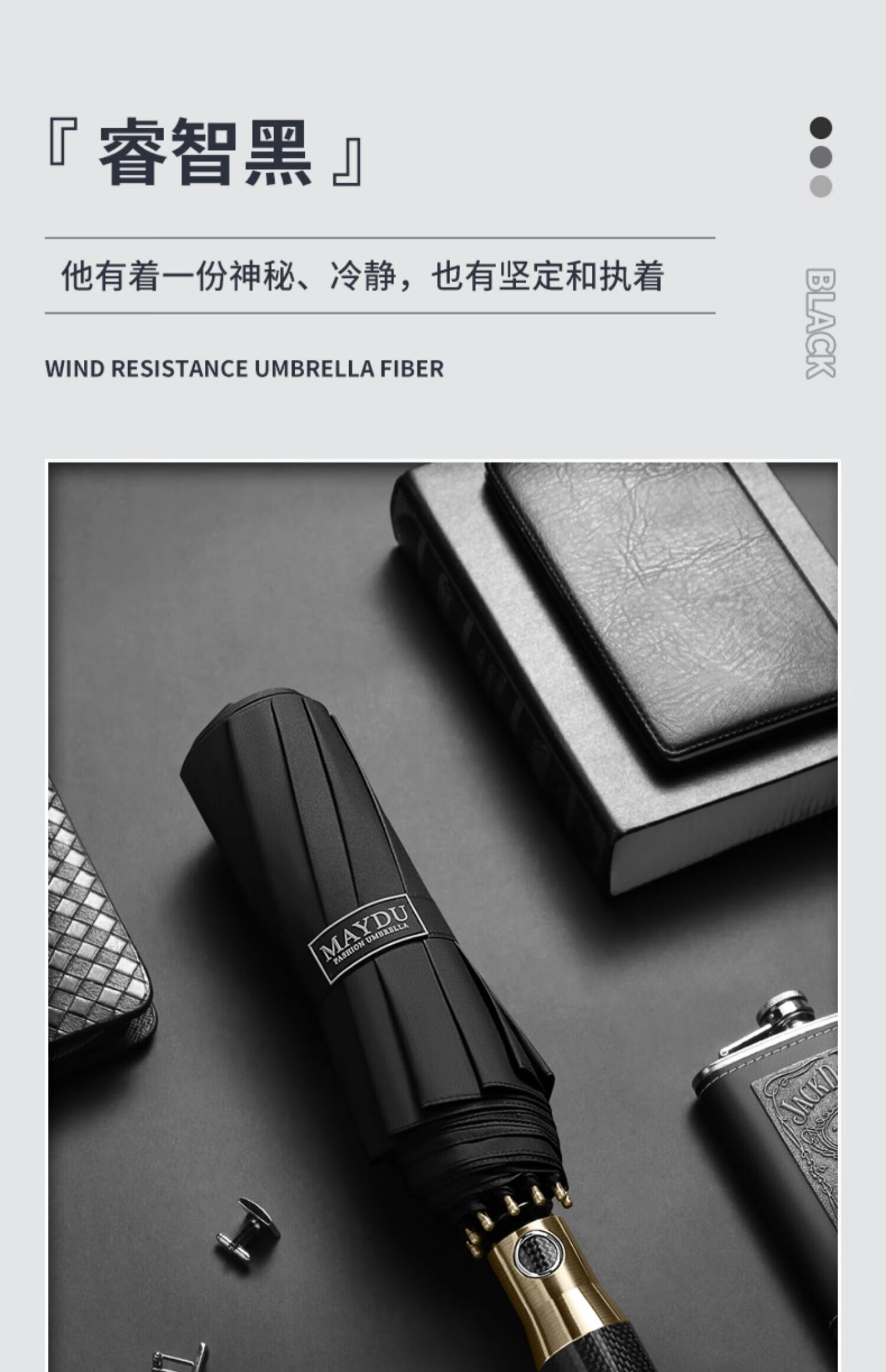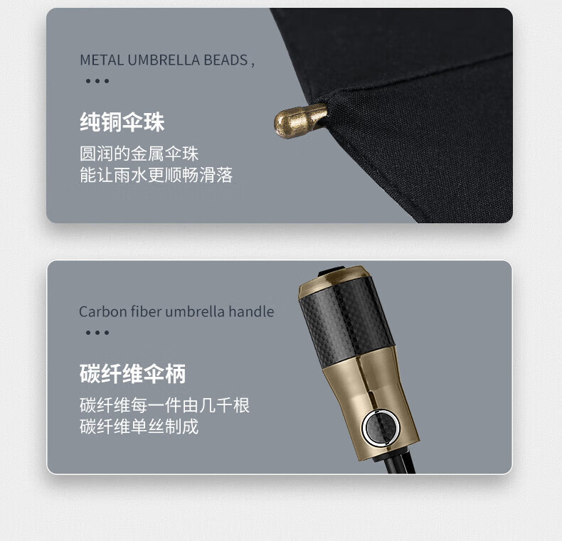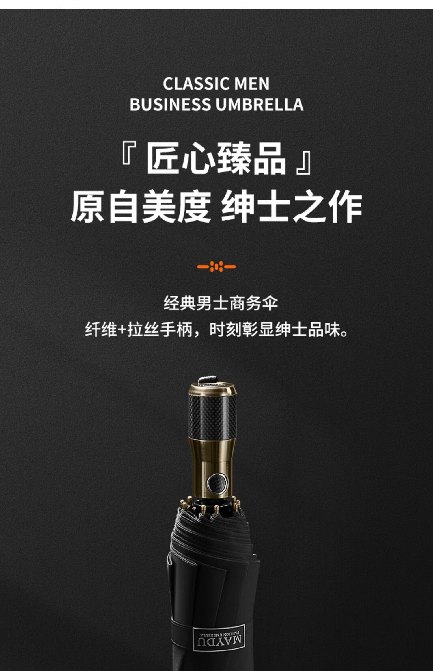 • 商品名称:美度(MAYDU)碳纤柄男士商务折叠伞10骨防紫外线三折双人伞 M3386商务黑 M3386/把