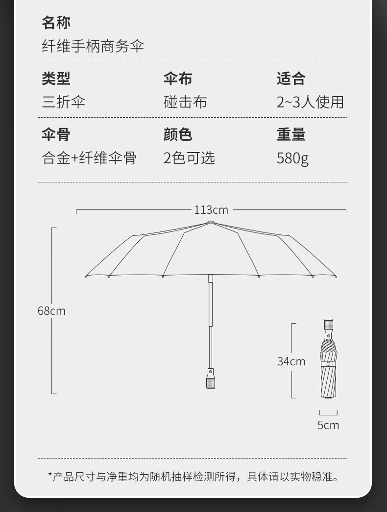 包装清单: 雨伞×1、说明书×1