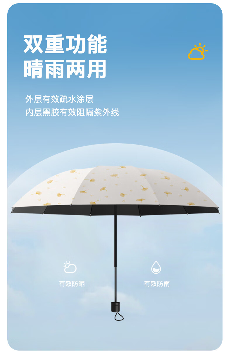 • 商品名称:美度防晒晴雨伞三折太阳伞防晒防紫外线女晴雨两用防风伞M3051米色 M3101/把