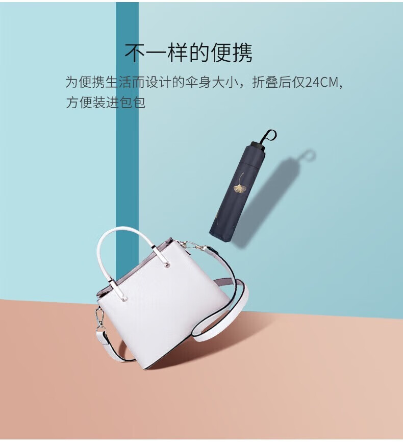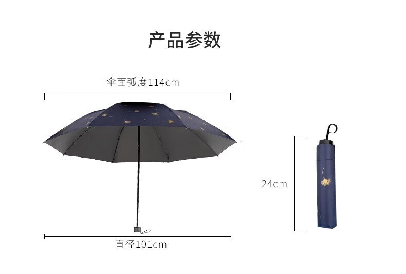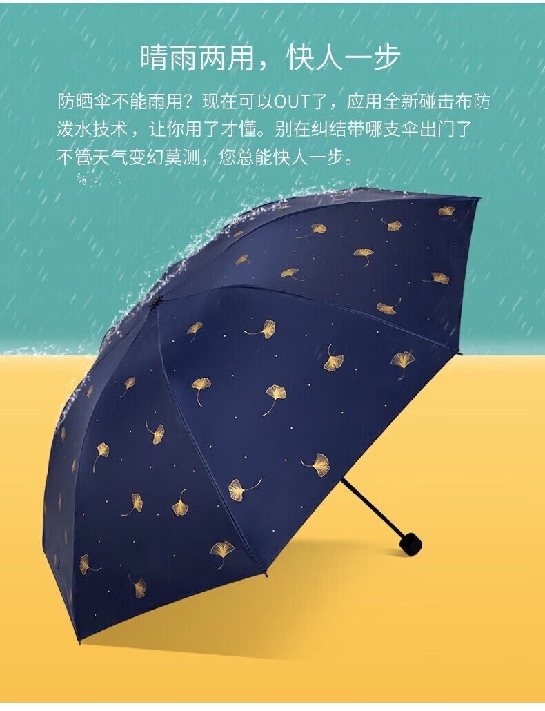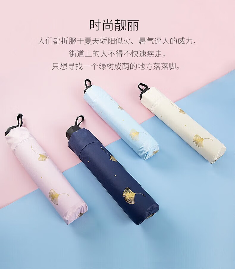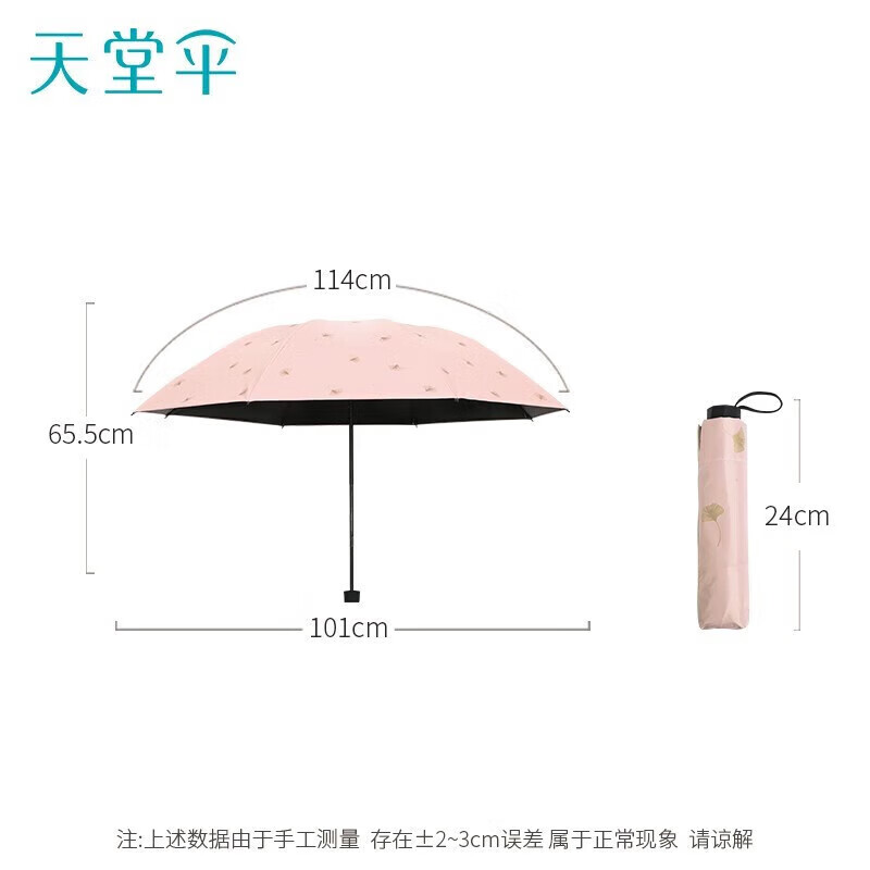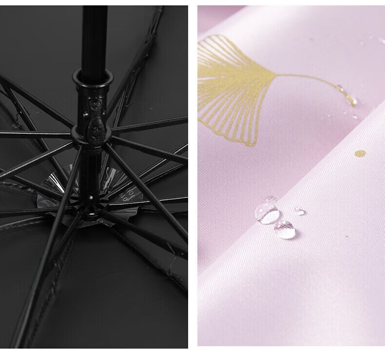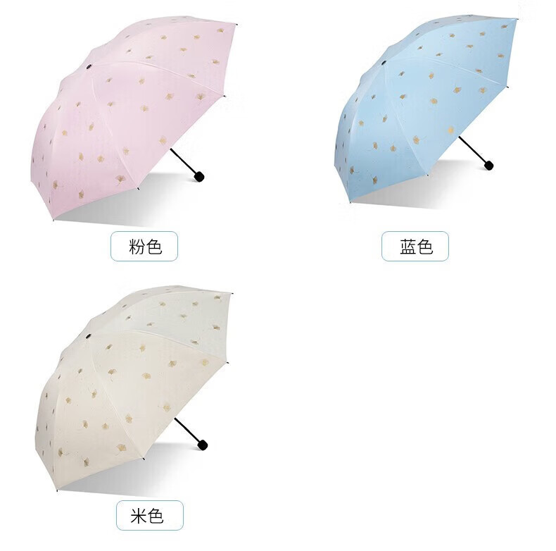 • 商品名称:天堂伞 银杏飞舞 57cm*8骨三折防雨防晒 晴雨伞黑胶伞两用 33631E 粉色 33631E/把