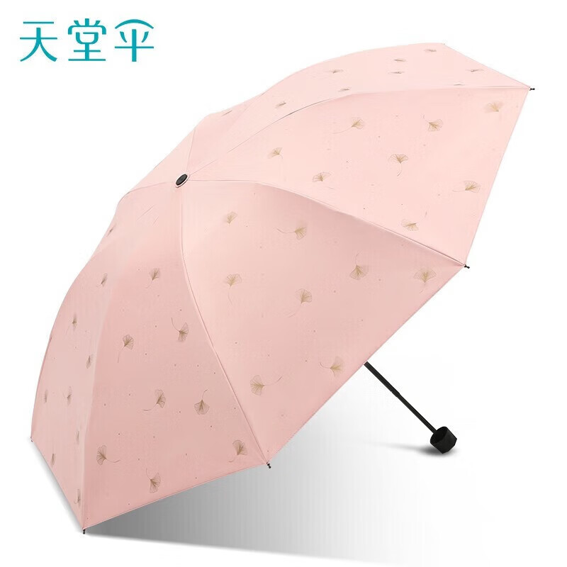 天堂伞 银杏飞舞 57cm*8骨三折防雨防晒 晴雨伞黑胶伞两用 33631E 粉色 33631E/把
