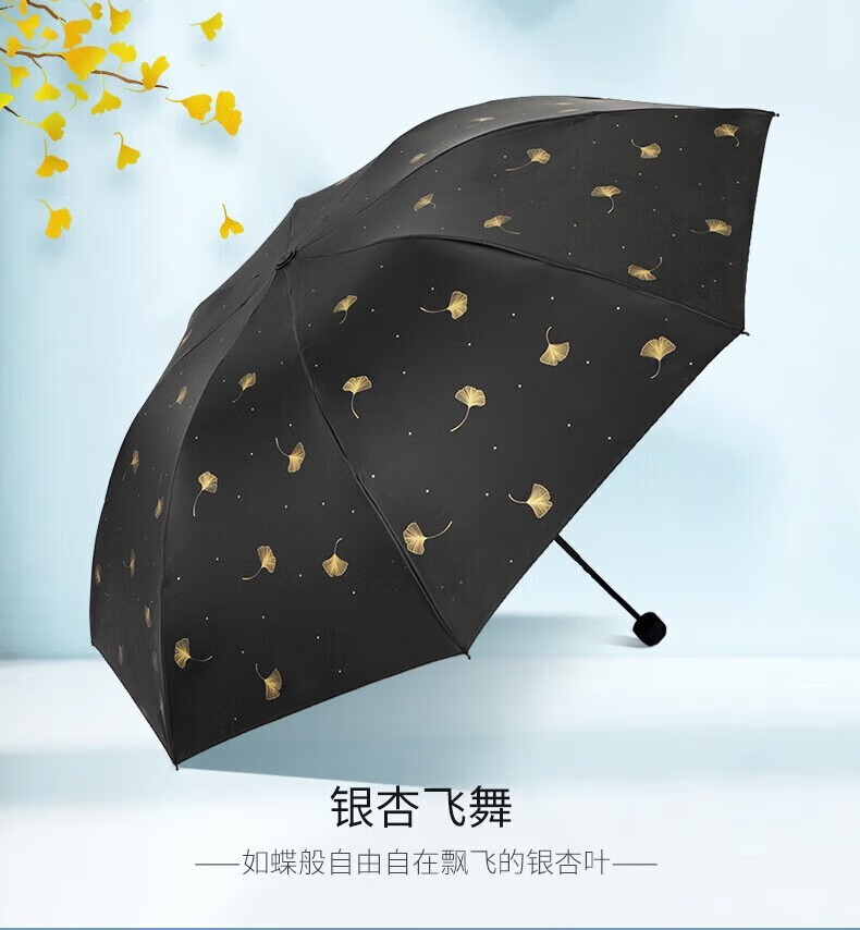 商品名称: 天堂伞 银杏飞舞 57cm*8骨三折防雨防晒 晴雨伞黑胶伞两用 33631E 粉色 33631E/把