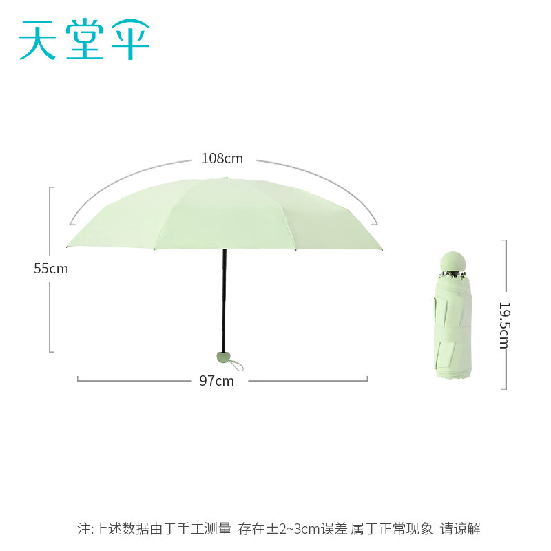• 商品名称:天堂 防紫外线阳伞五折 黑胶防晒迷你便携口袋胶囊伞 鳄梨绿 TTS/把