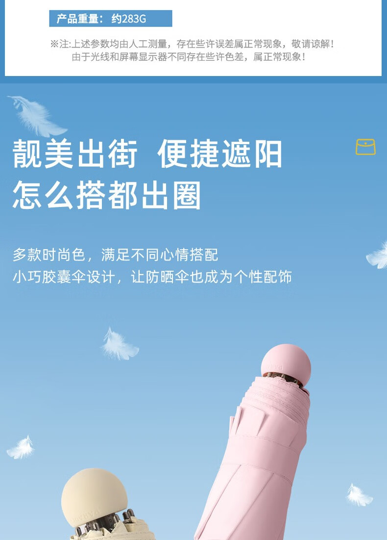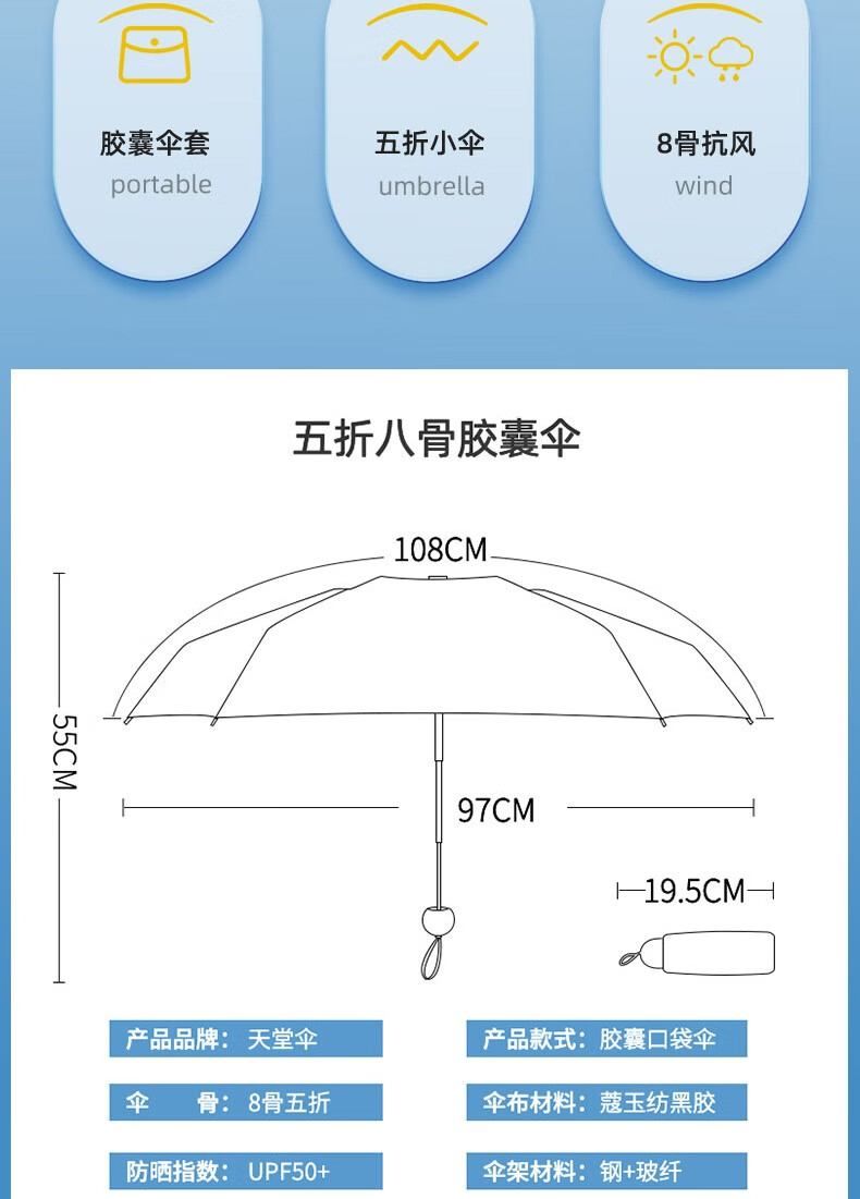 商品名称: 天堂 防紫外线阳伞五折 黑胶防晒迷你便携口袋胶囊伞 鳄梨绿 TTS/把
