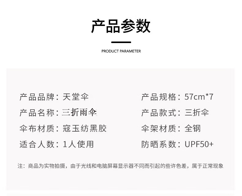 包装清单: 天堂37159EC三折晴雨伞*1把