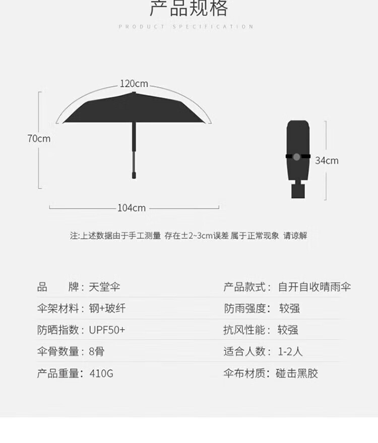 生活日用  > 日用杂货  > 雨伞雨具  >  天堂  >  天堂晴雨伞自动31115 黑色 晴雨伞/把