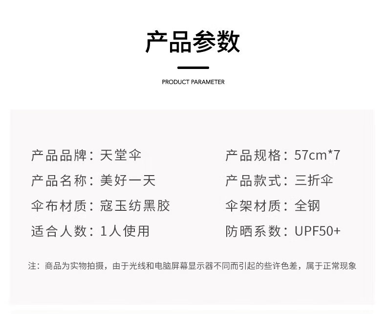 • 商品名称:天堂三折晴雨伞 37159EC 颜色随机 雨伞/把