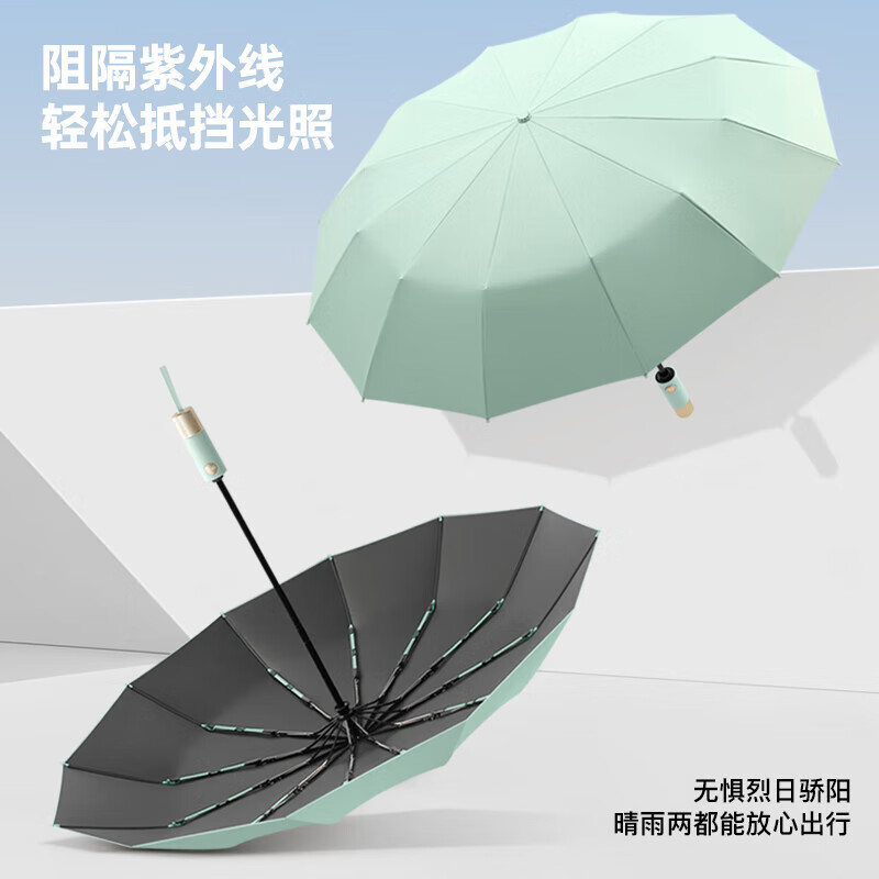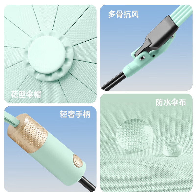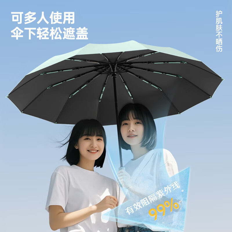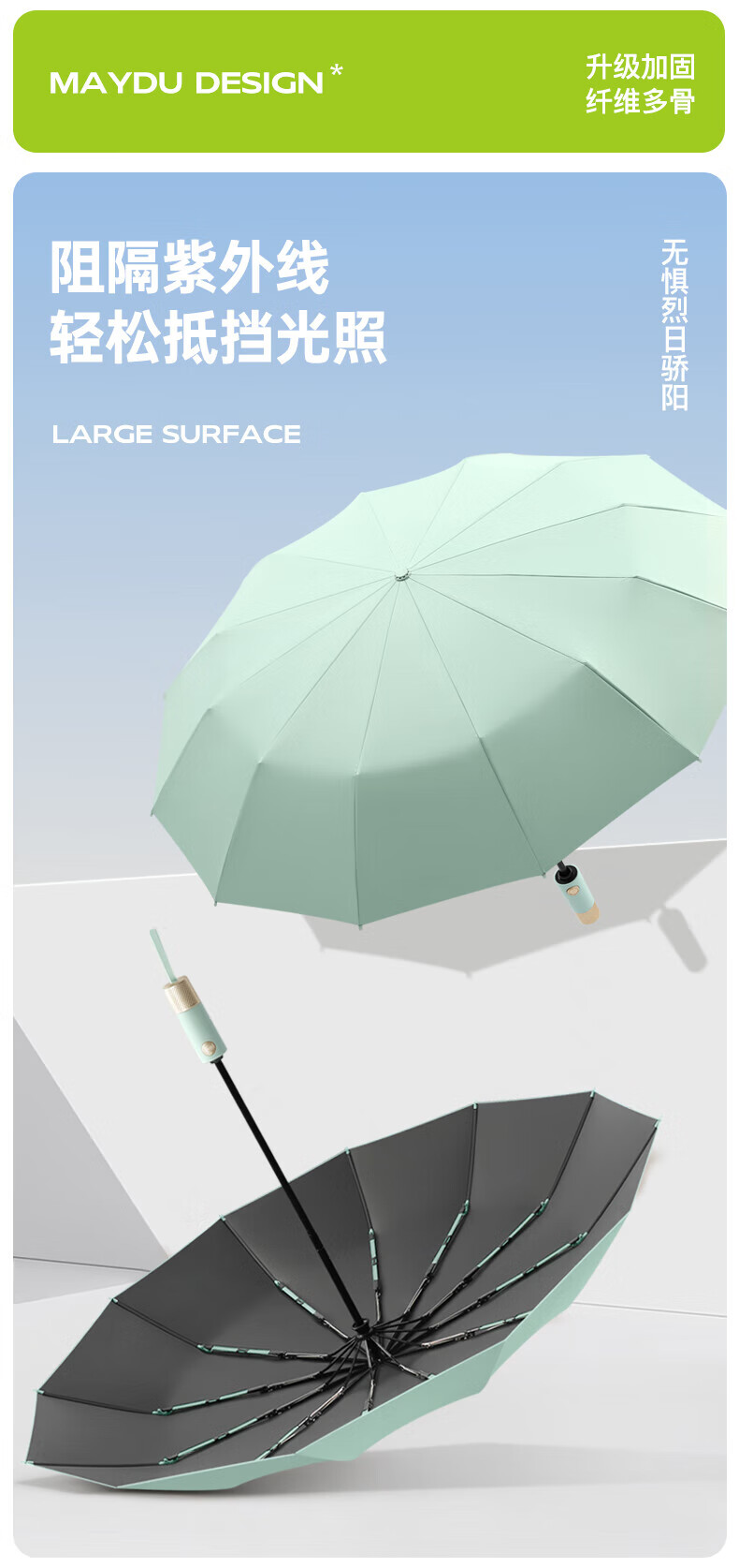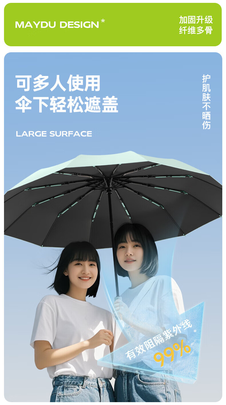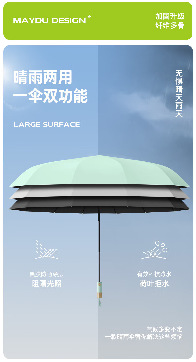 美度(MAYDU)72骨全自动三折自动伞黑胶遮阳防紫外线晴雨伞 M3066天蓝色 M3066/把