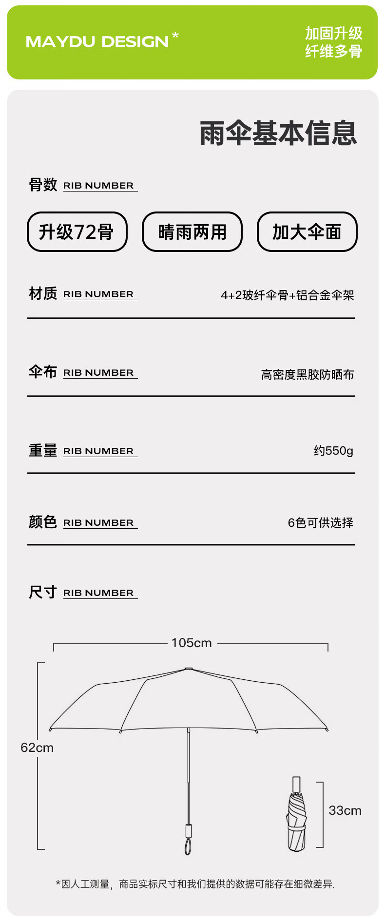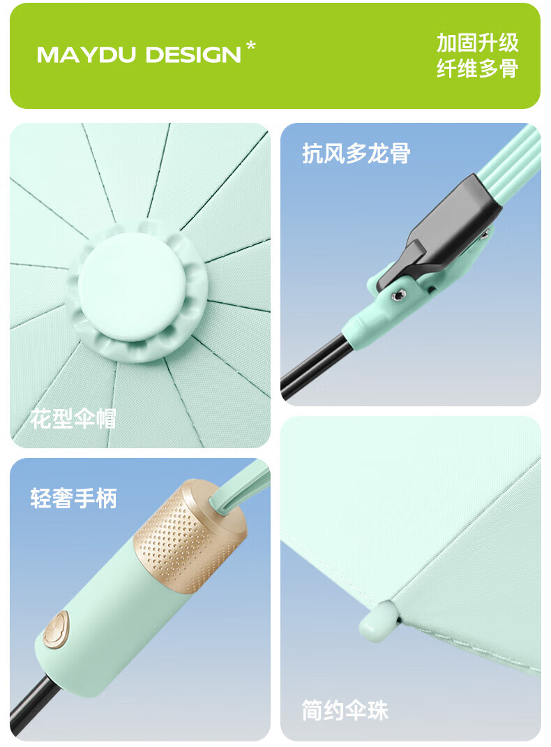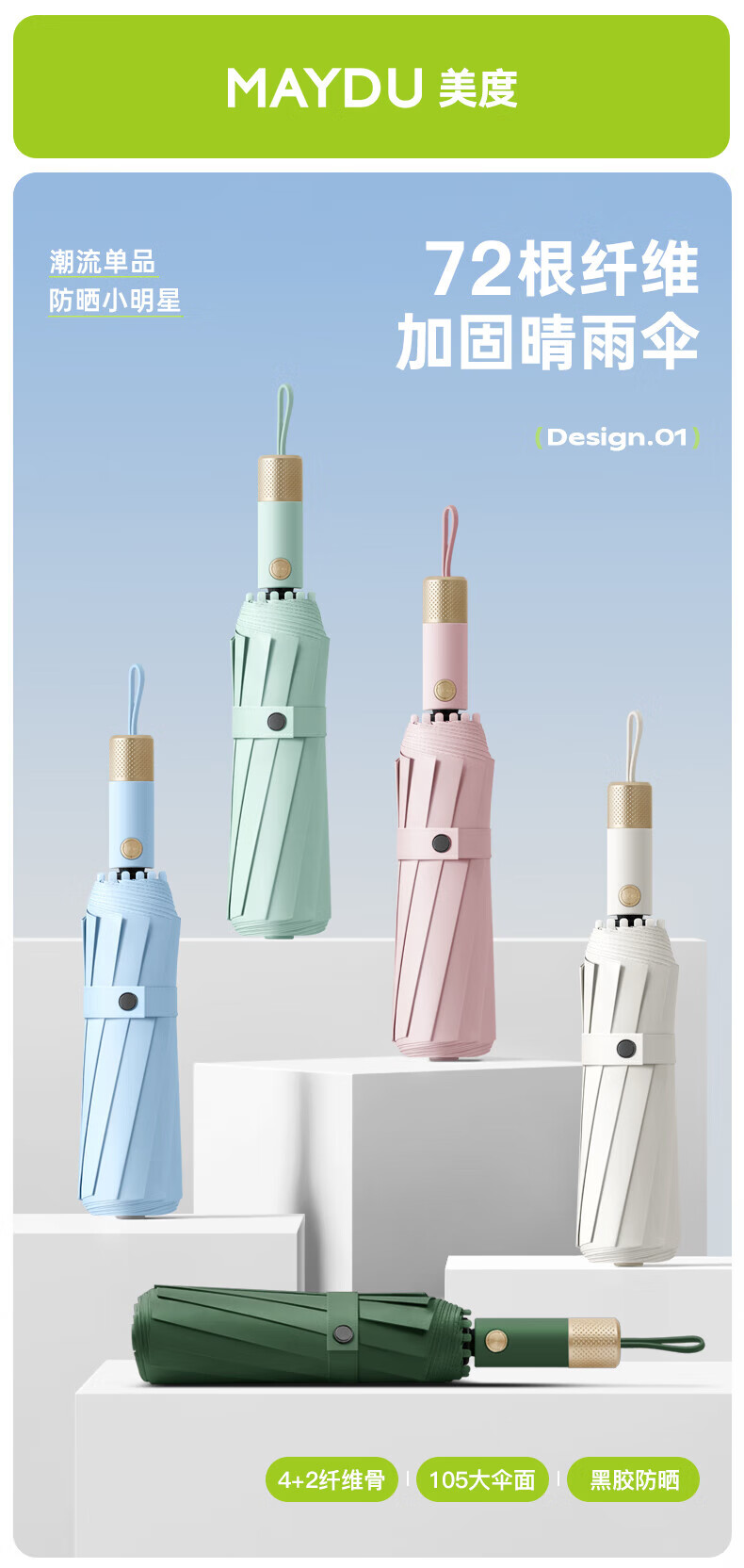 • 商品名称:美度(MAYDU)72骨全自动三折自动伞黑胶遮阳防紫外线晴雨伞 M3066天蓝色 M3066/把