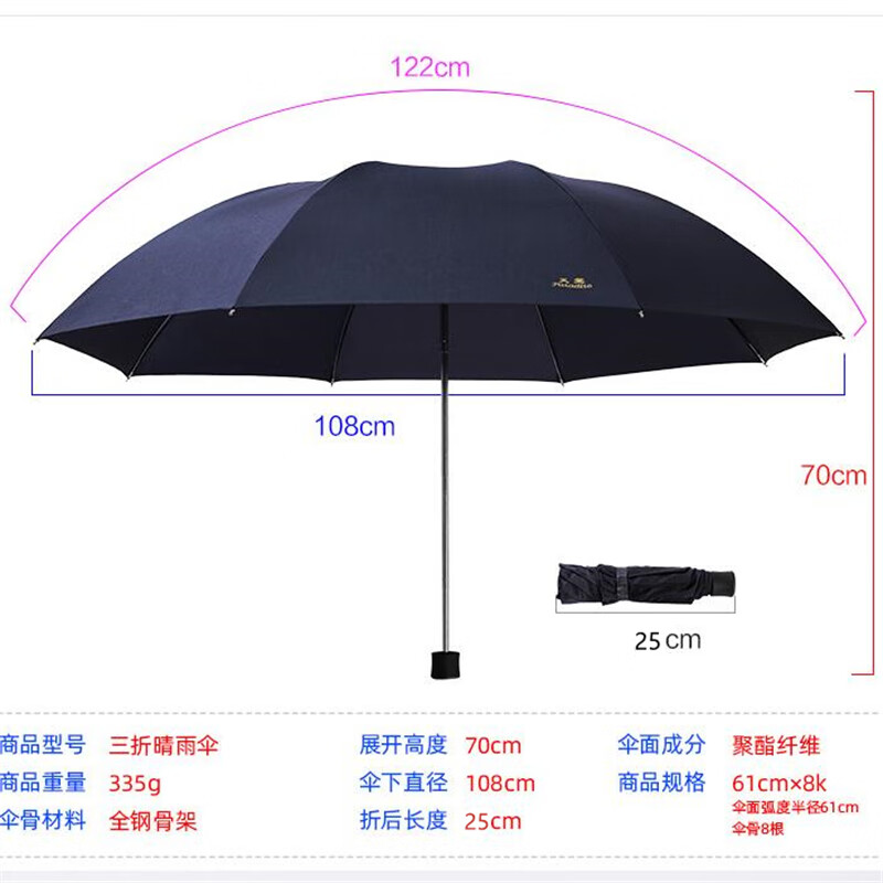 • 商品名称:天堂伞 加大商务三折晴雨伞30966DLN(61cm*8K) 30966DLN/把