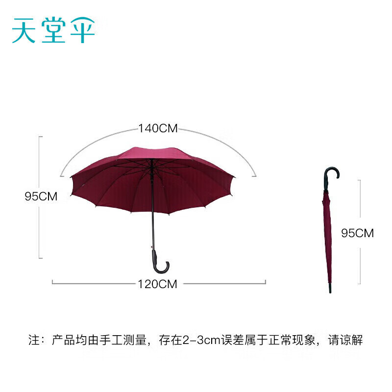 • 商品名称:天堂 长柄加大雨伞半自动超大号商务直杆伞晴雨伞70*10骨 深粟红 晴雨伞/把