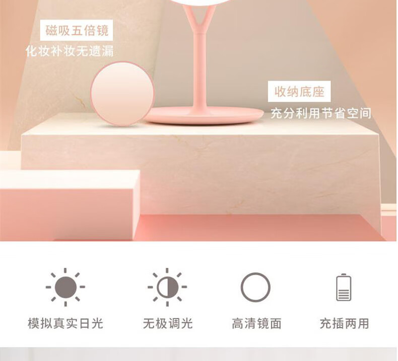 商品名称: 斐色耐(FASCINATE)化妆镜 收纳一体带灯台式充电款梳妆补光镜子 FT-288 三色光 FT-288/个