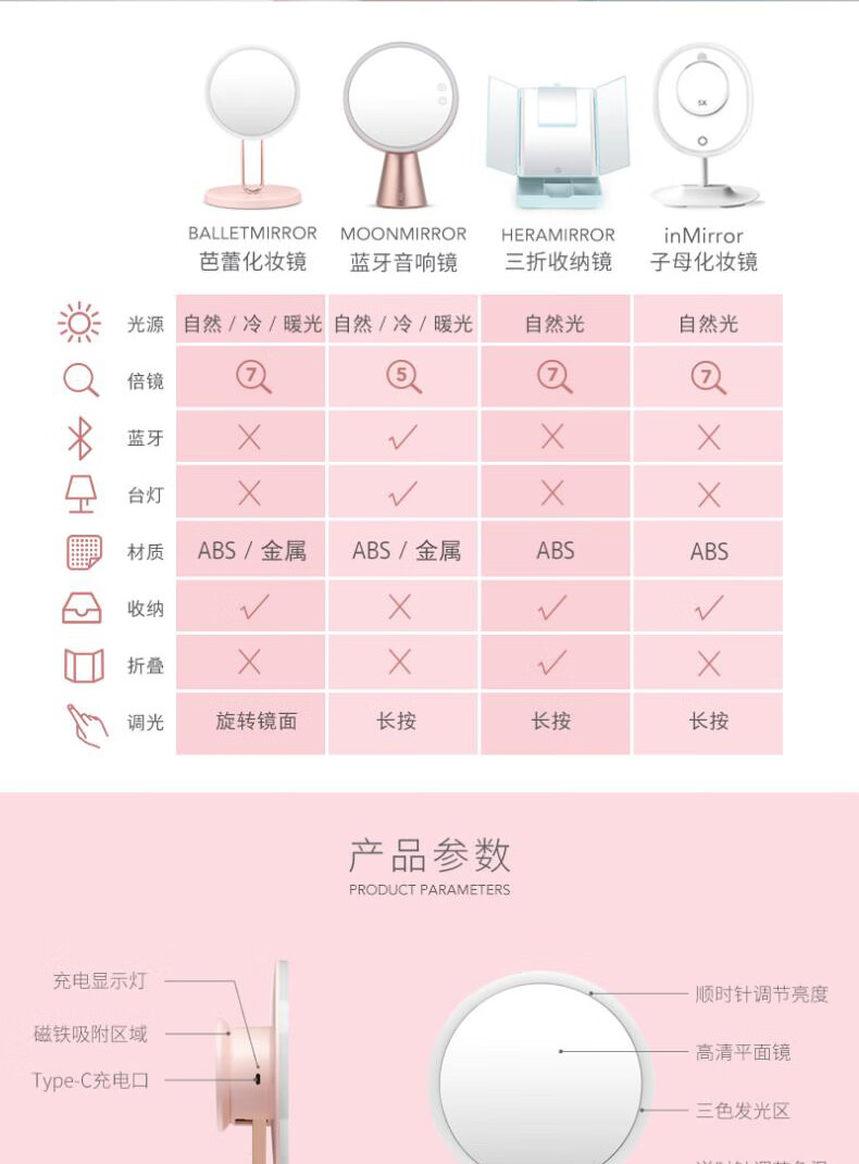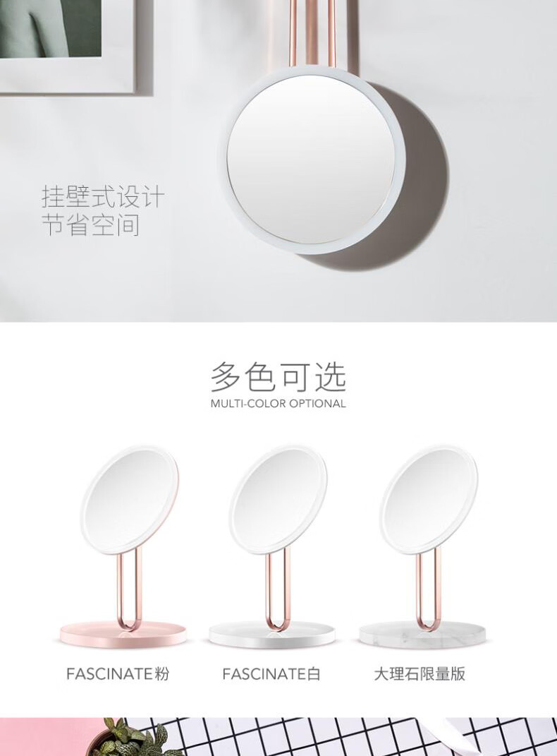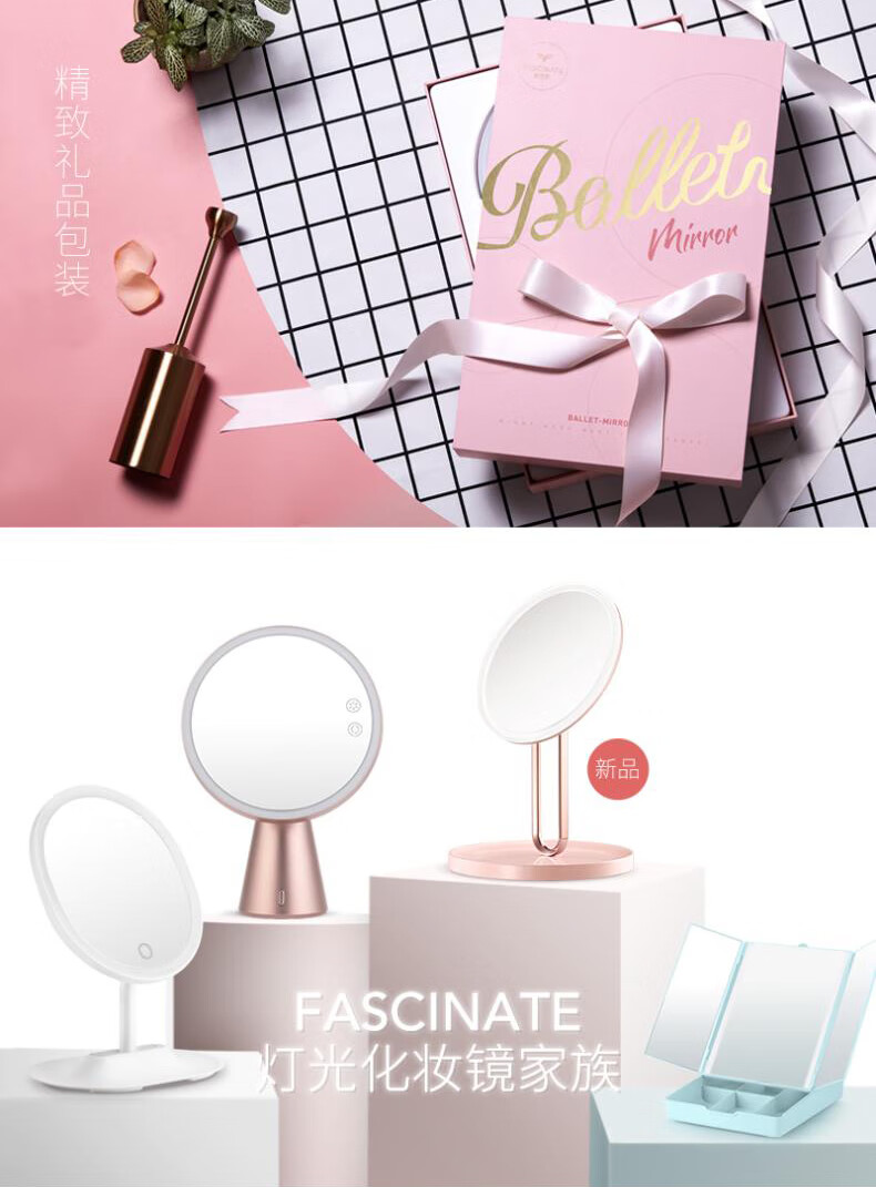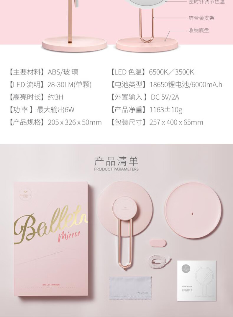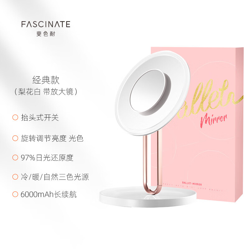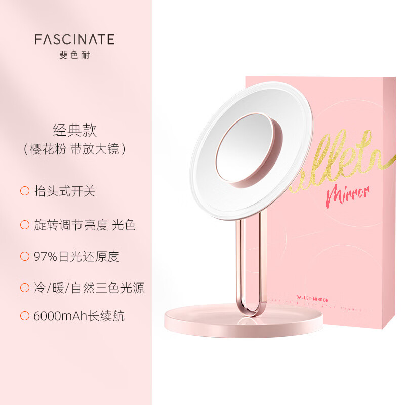 • 商品名称:斐色耐(FASCINATE)芭蕾镜 专业智能led化妆镜ins风梳妆台带补光灯镜子 RM273-DL RM273-DL/个