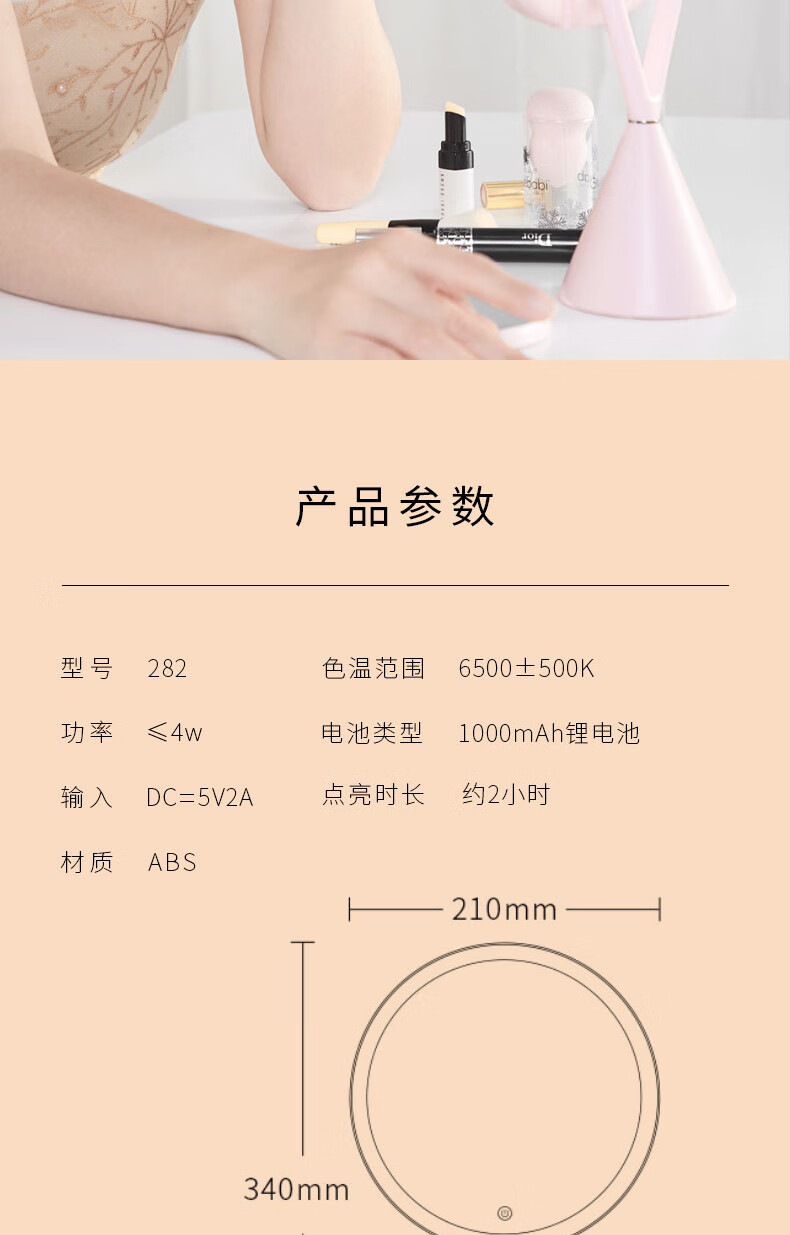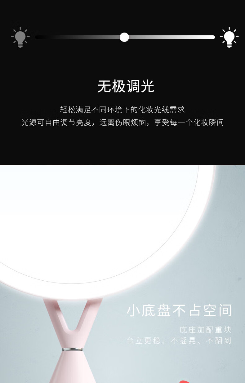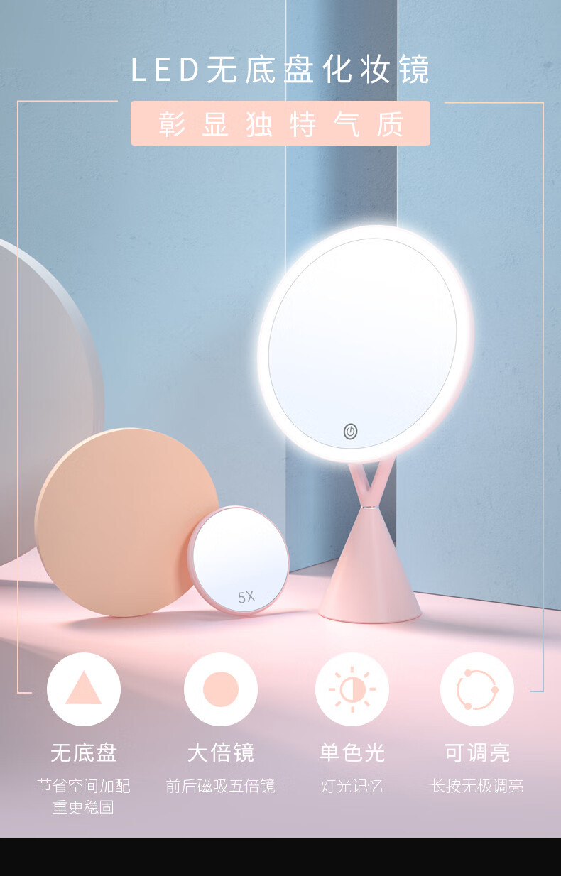 商品名称: 斐色耐(FASCINATE)带灯专业化妆镜 台式led灯充电款梳妆美妆镜桌面补光镜子 FT282 FT282/个