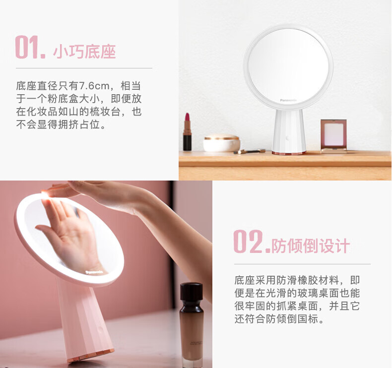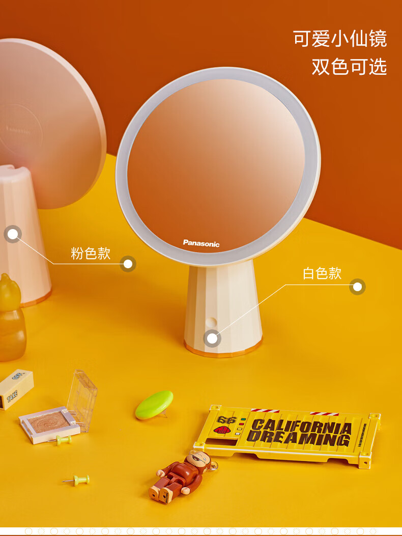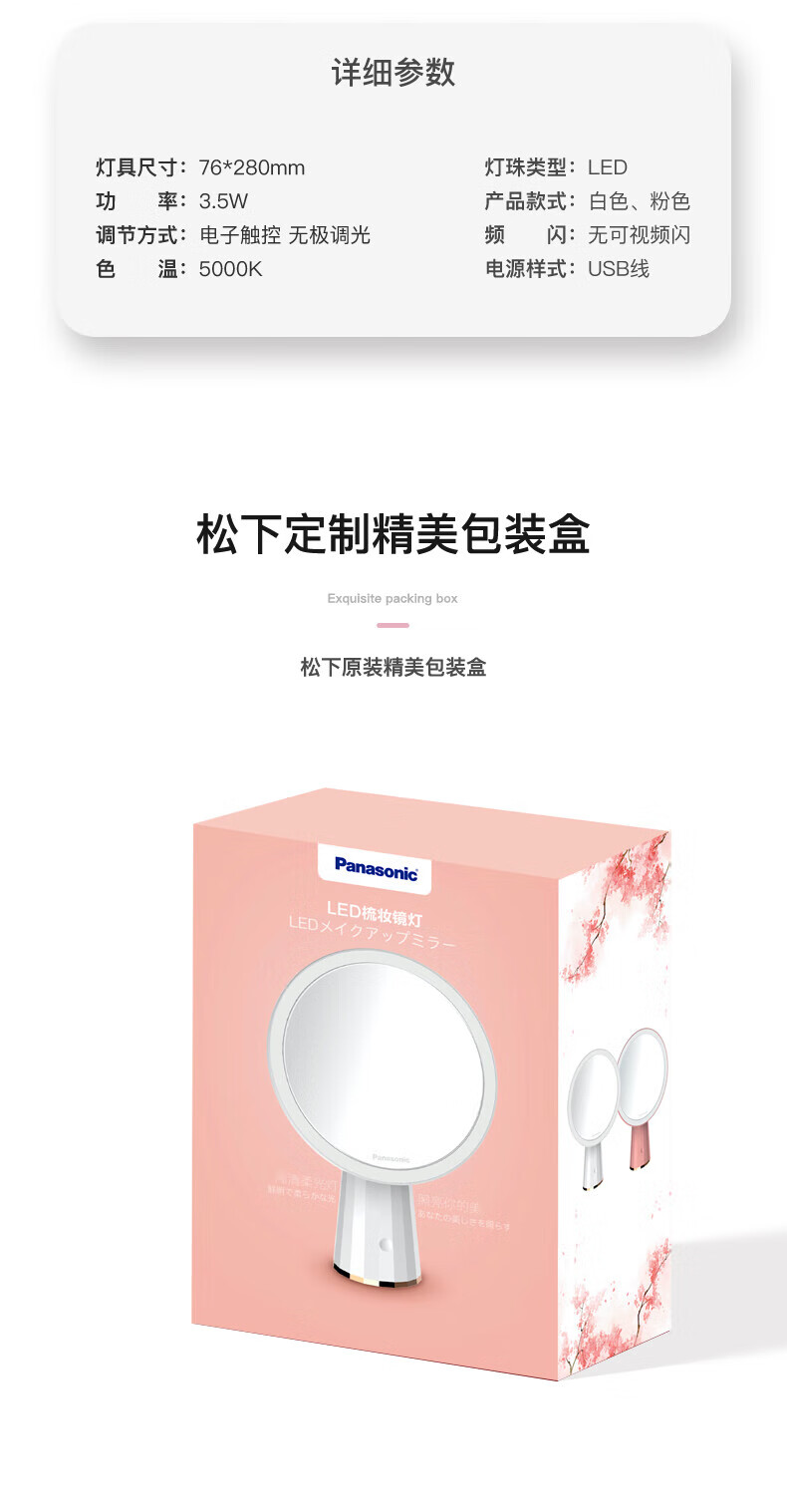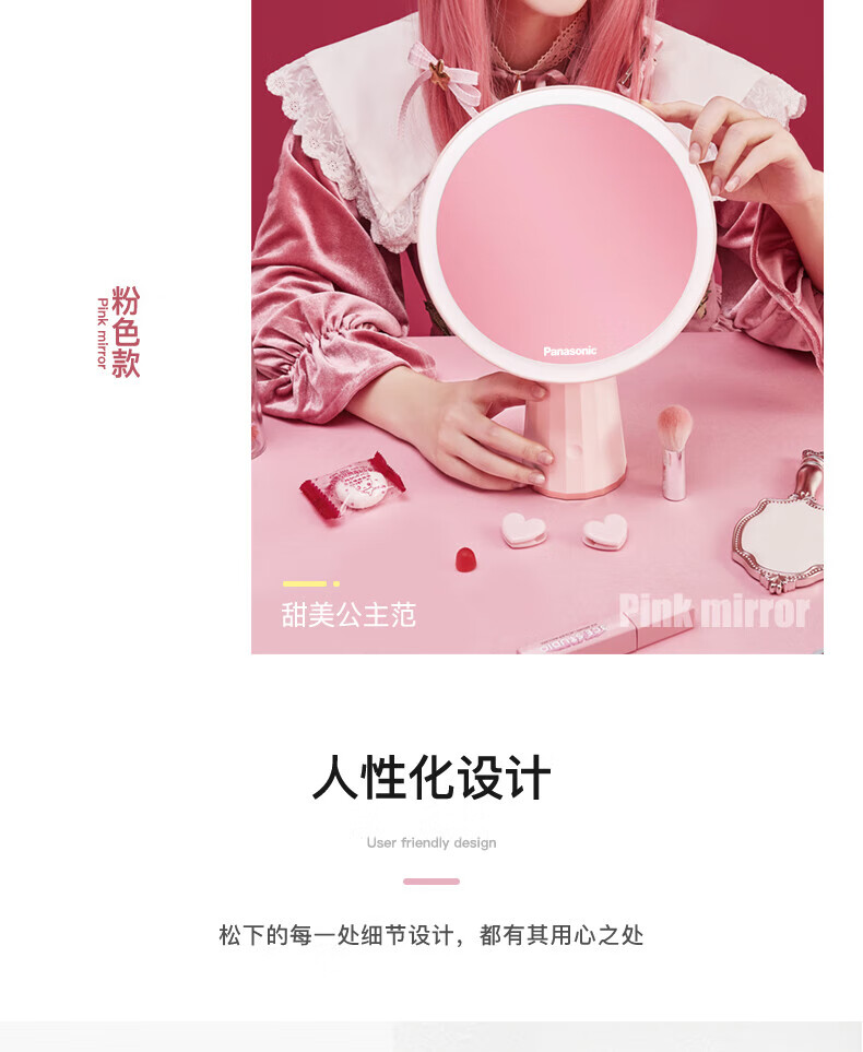 • 商品名称:松下(Panasonic)带灯led化妆镜子灯梳妆镜智能便携补光美妆镜礼物HHLT0640PL 粉色 //个