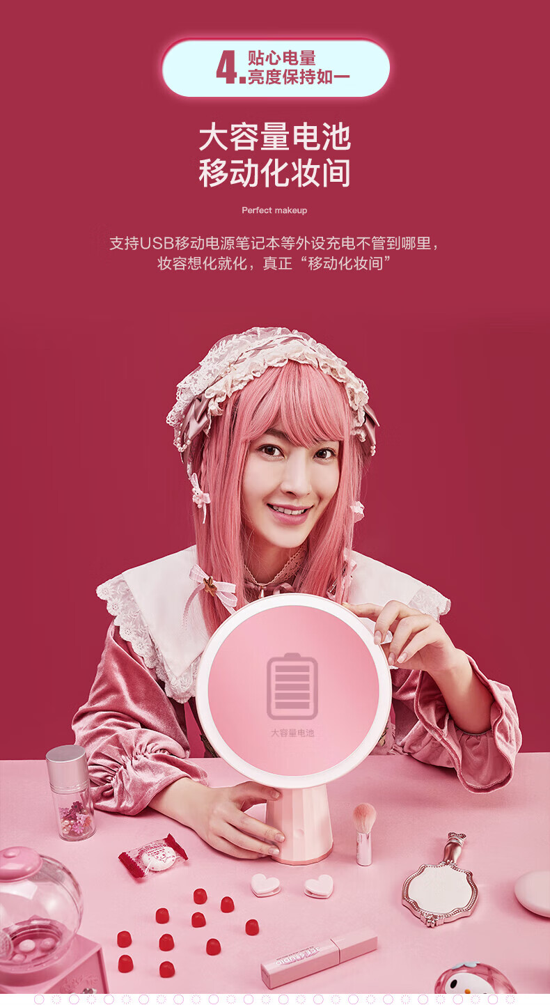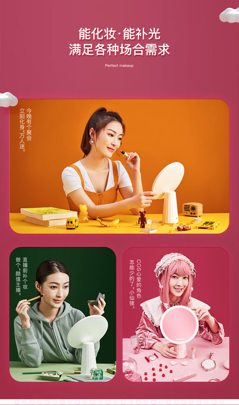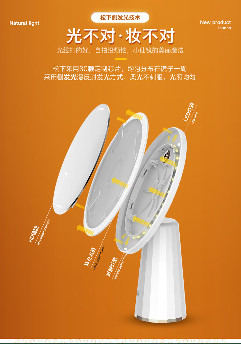 • 商品名称:松下(Panasonic)带灯led化妆镜子灯梳妆镜智能便携补光美妆镜礼物HHLT0640PL 粉色 //个