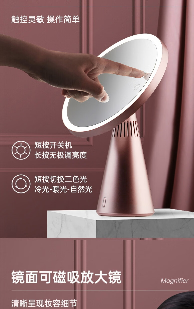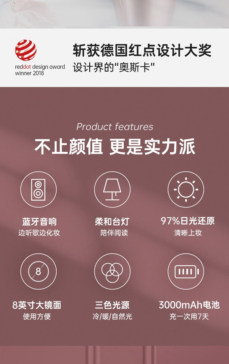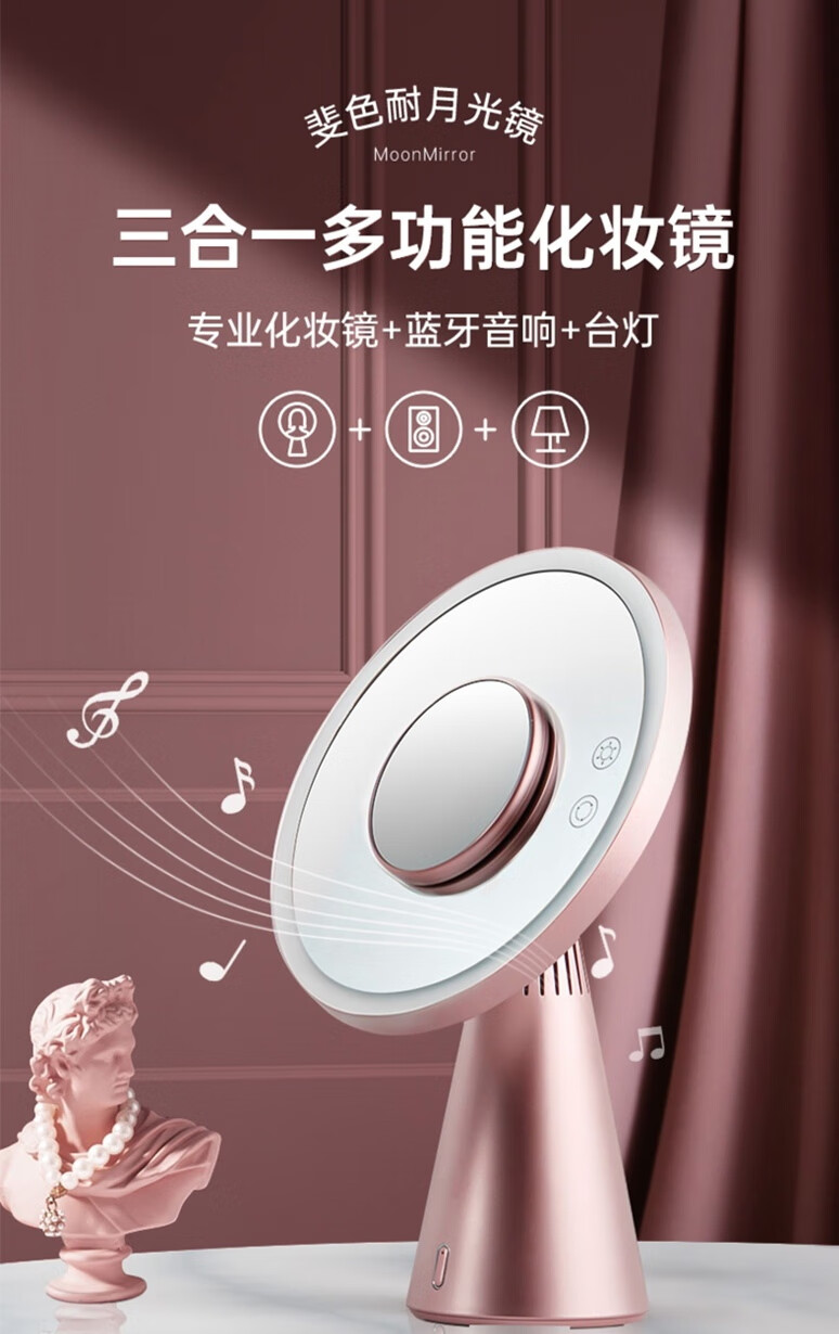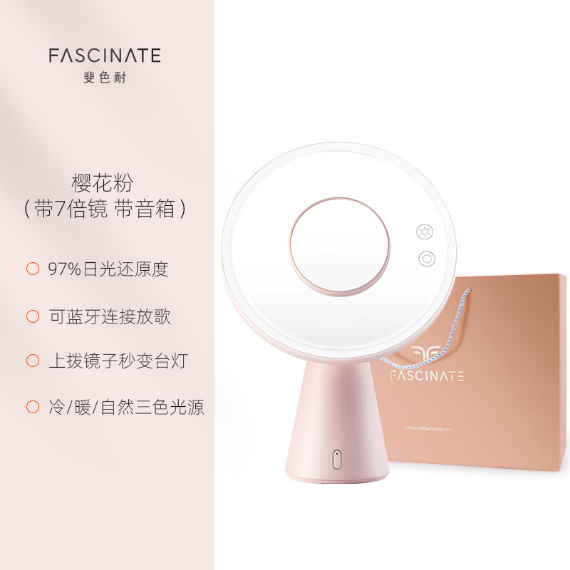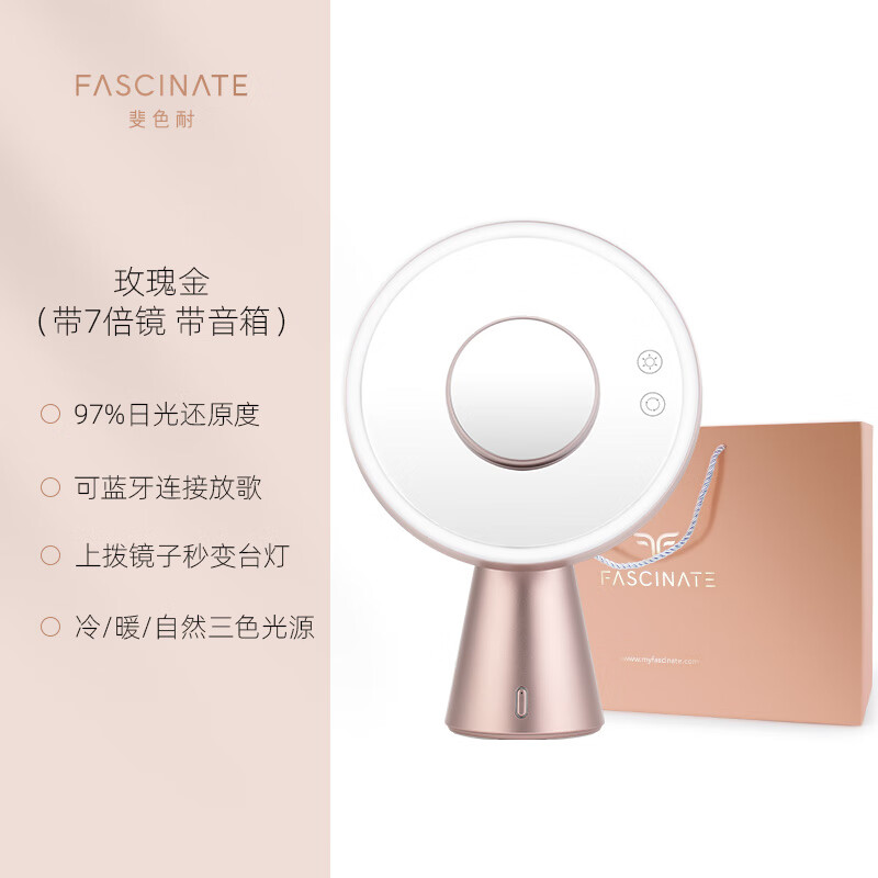 • 商品名称:斐色耐(FASCINATE)月光镜 化妆镜带灯led三合一多功能补光梳妆镜带蓝牙音响 RM249 RM249/个