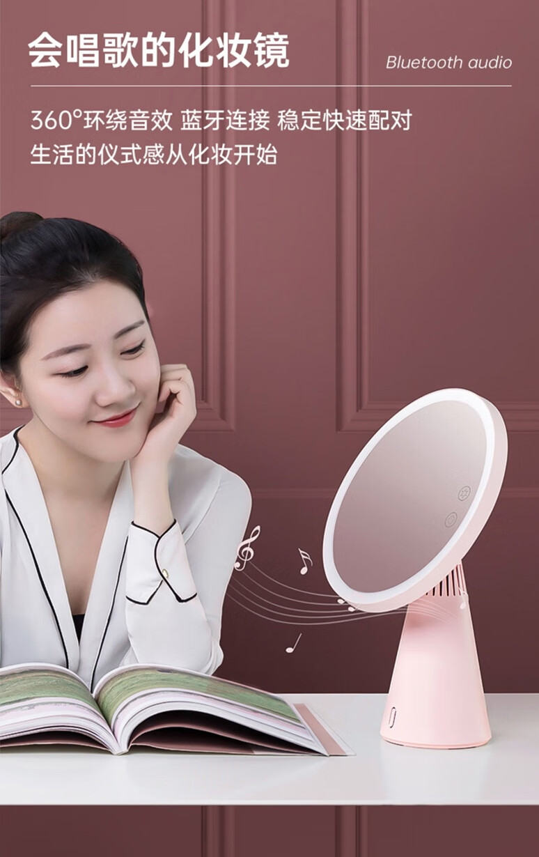 生活日用  > 日用杂货  > 化妆镜  >  斐色耐/FASCINATE  >  斐色耐(FASCINATE)月光镜 化妆镜带灯led三合一多功能补光梳妆镜带蓝牙音响 RM249 RM249/个
