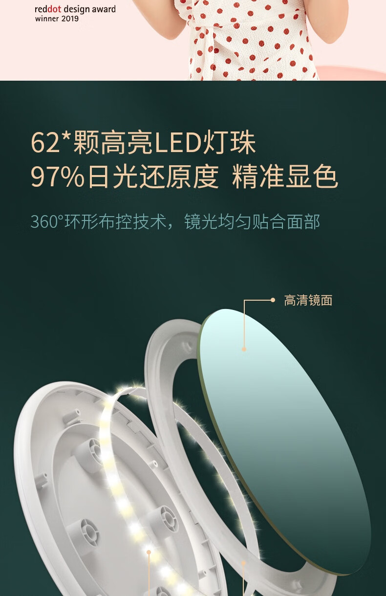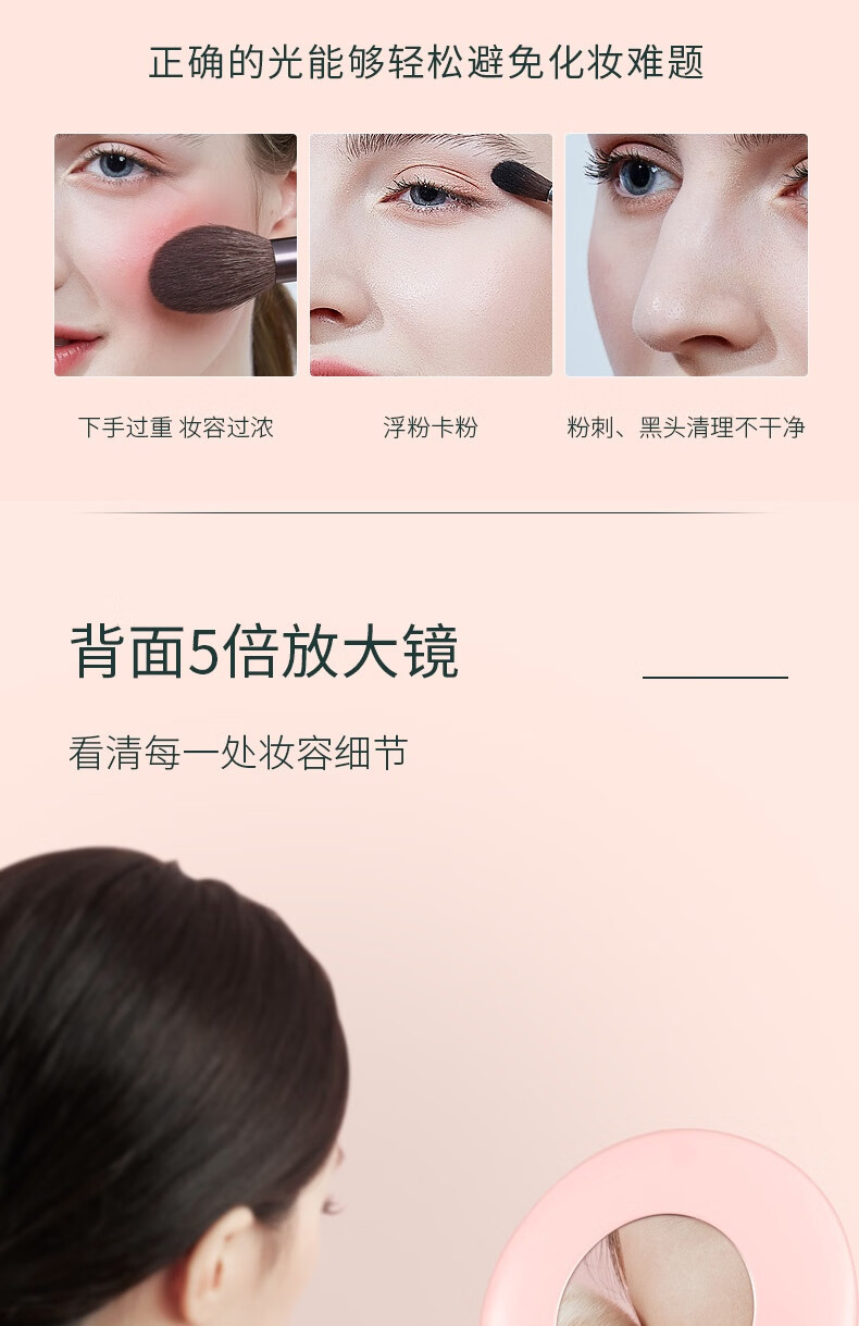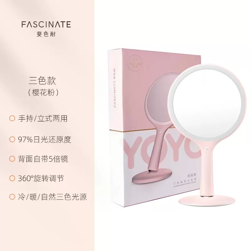• 商品名称:斐色耐(FASCINATE)摇摇镜手持化妆镜台式补光可旋转便携带放大镜子 RM285三色光 RM285/个