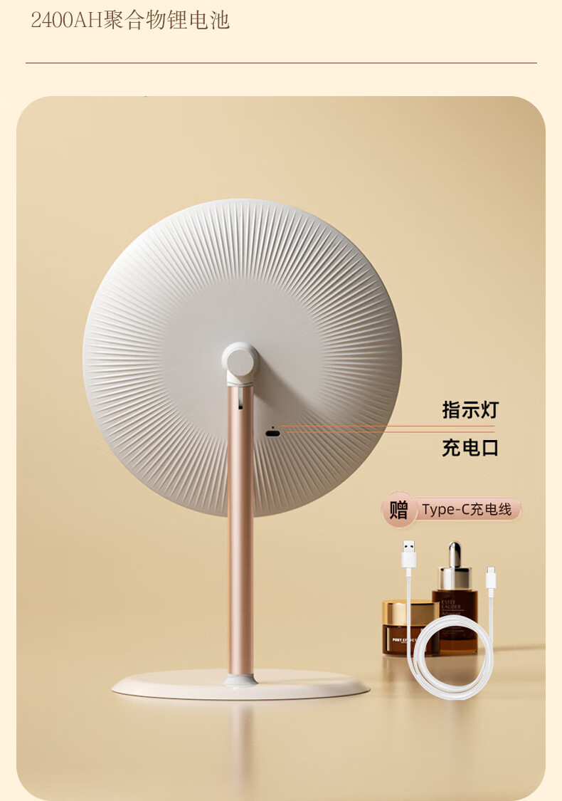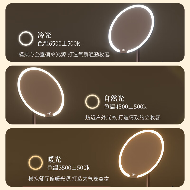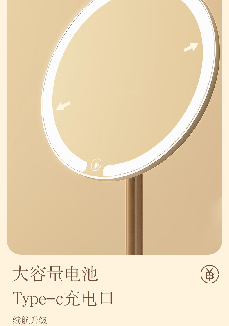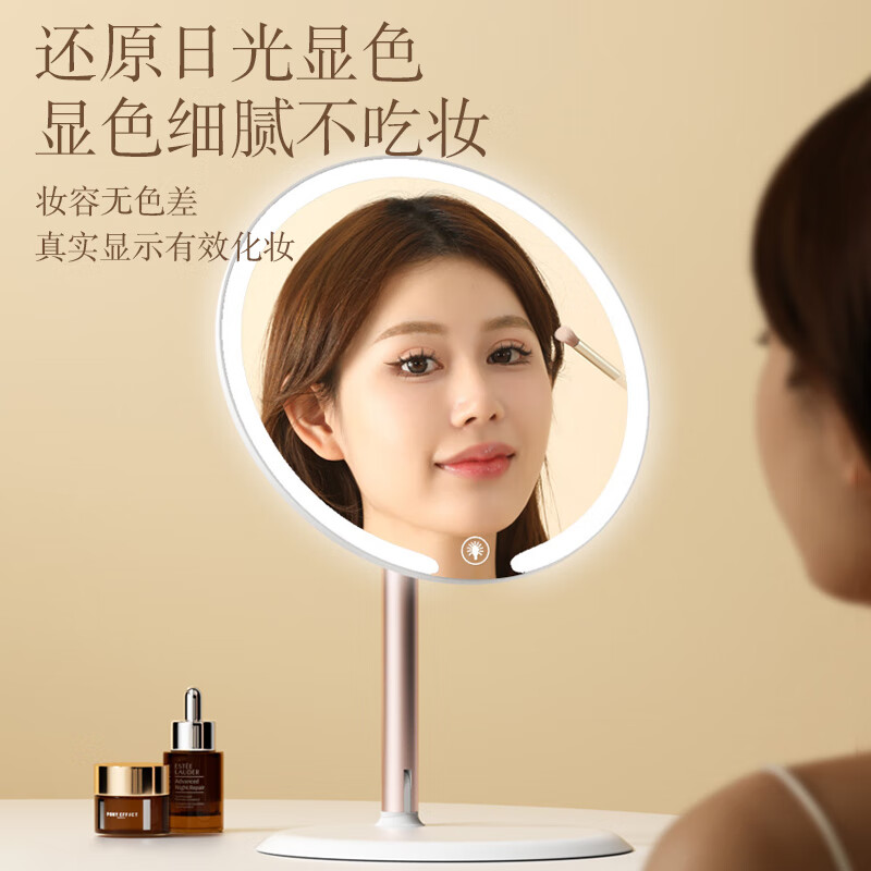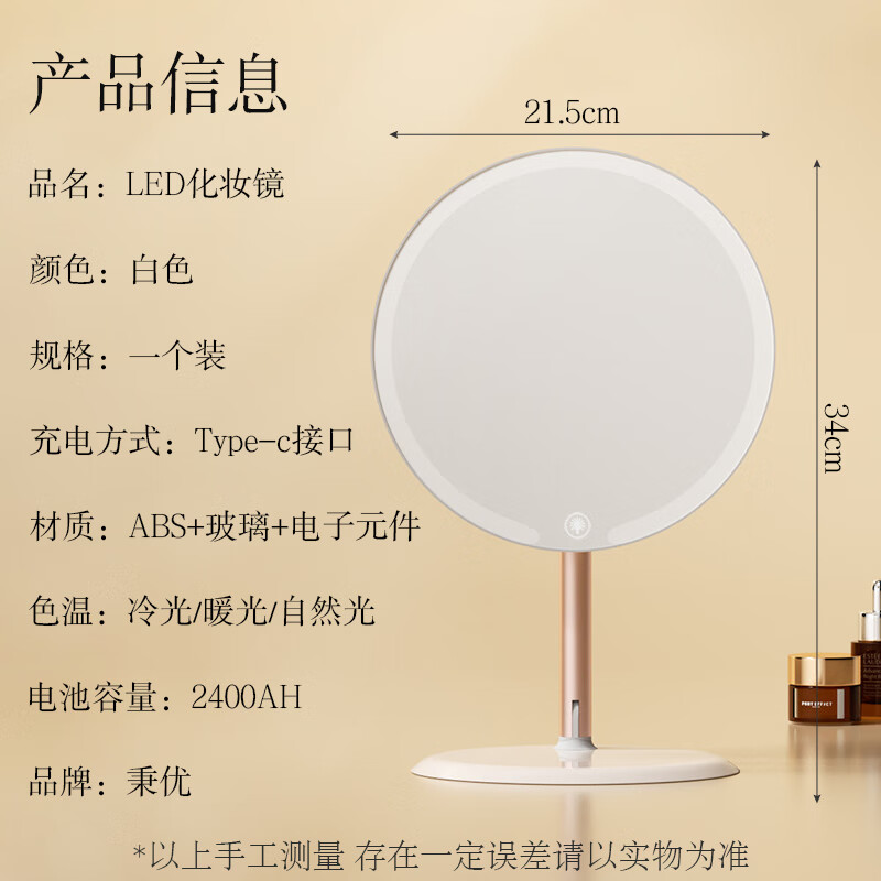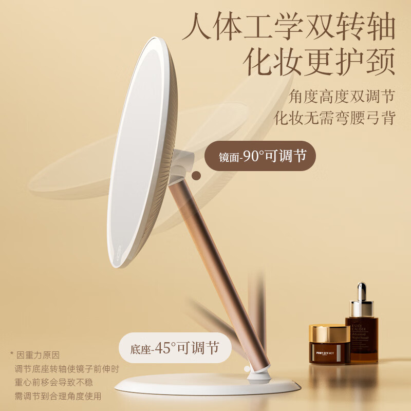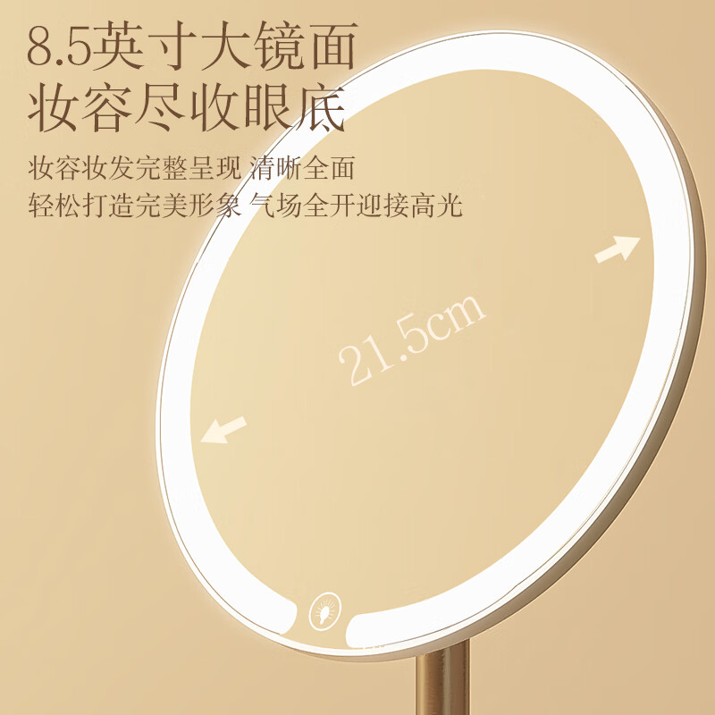 商品名称: 秉优 双轴化妆镜带灯台式桌面学生宿舍家用可立办公室led美妆镜子旋转 秉优81214210/件