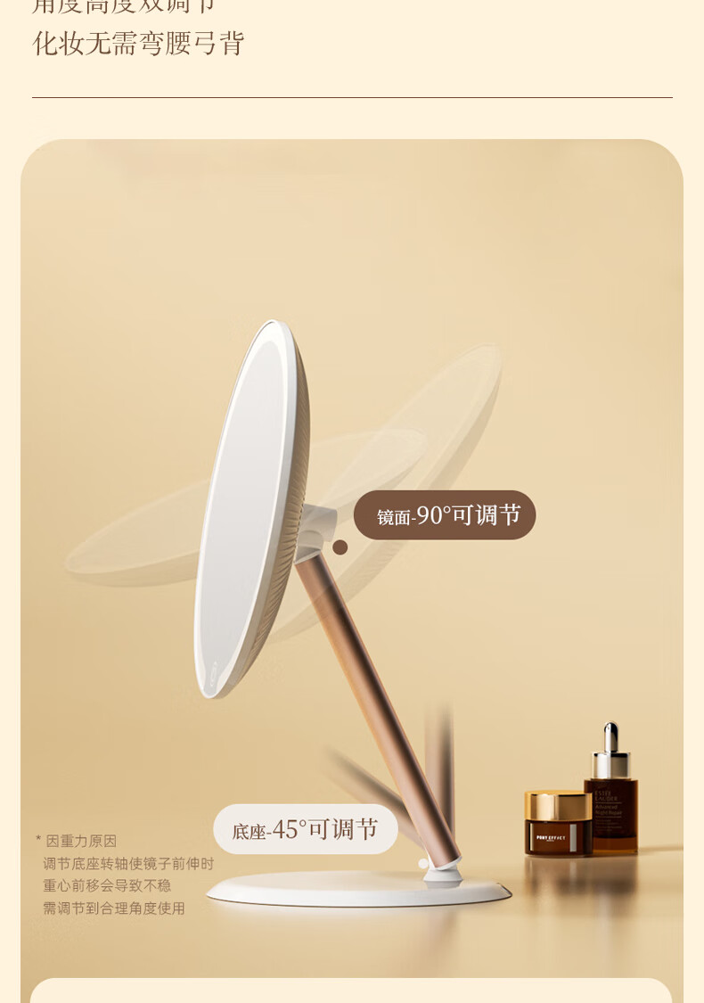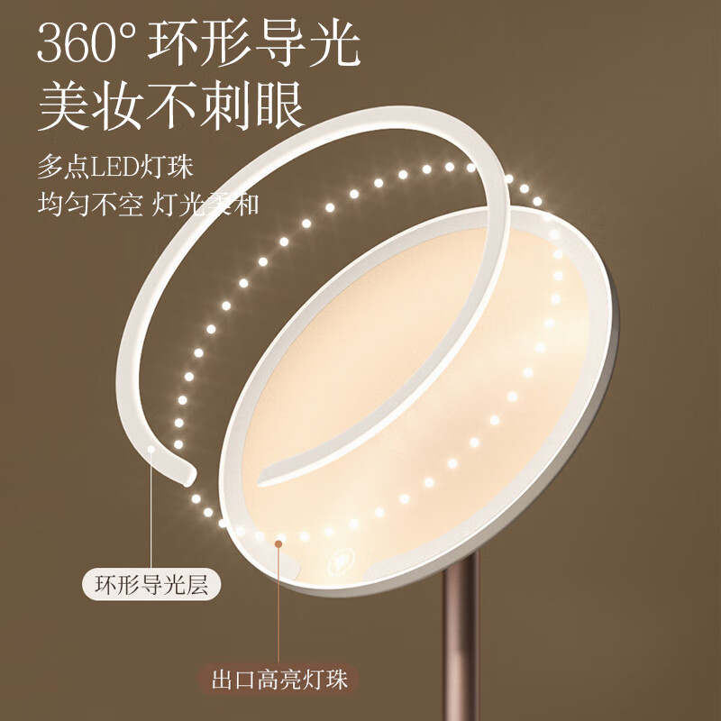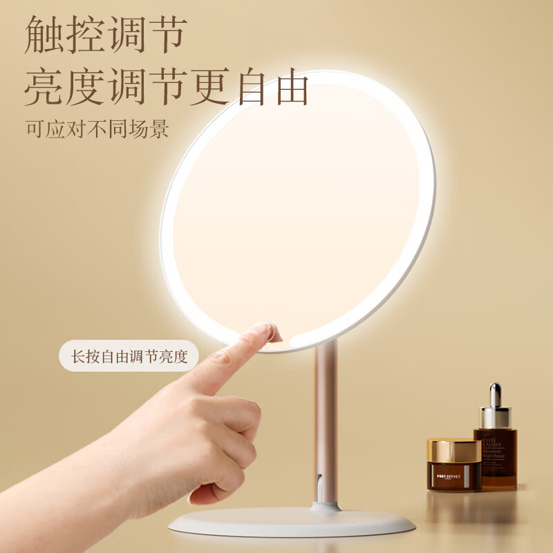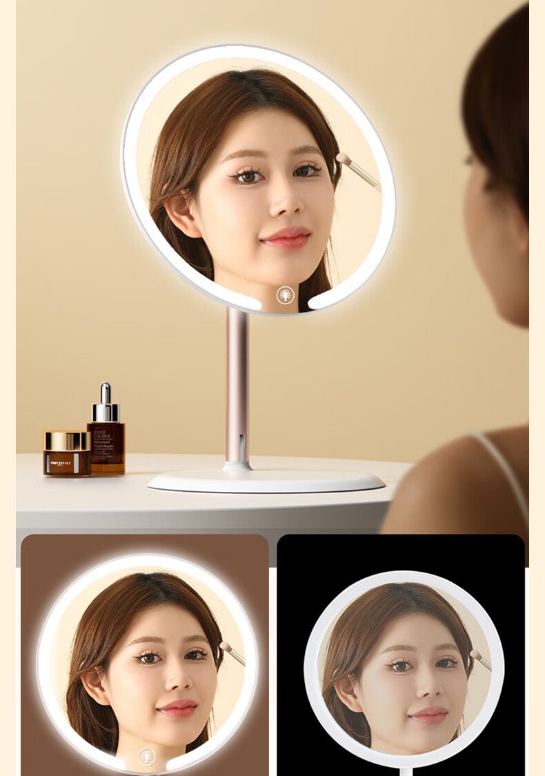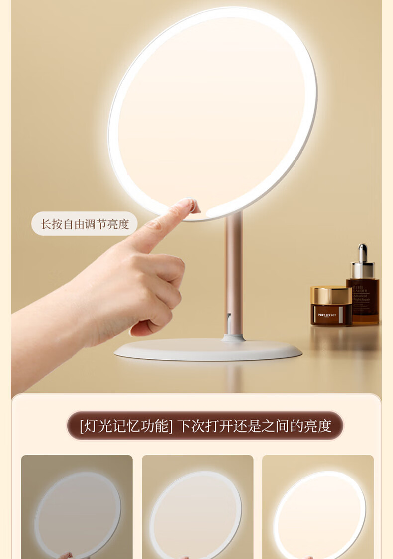 生活日用  > 日用个护工具  > 化妆镜  >  秉优  >  秉优 双轴化妆镜带灯台式桌面学生宿舍家用可立办公室led美妆镜子旋转 秉优81214210/件