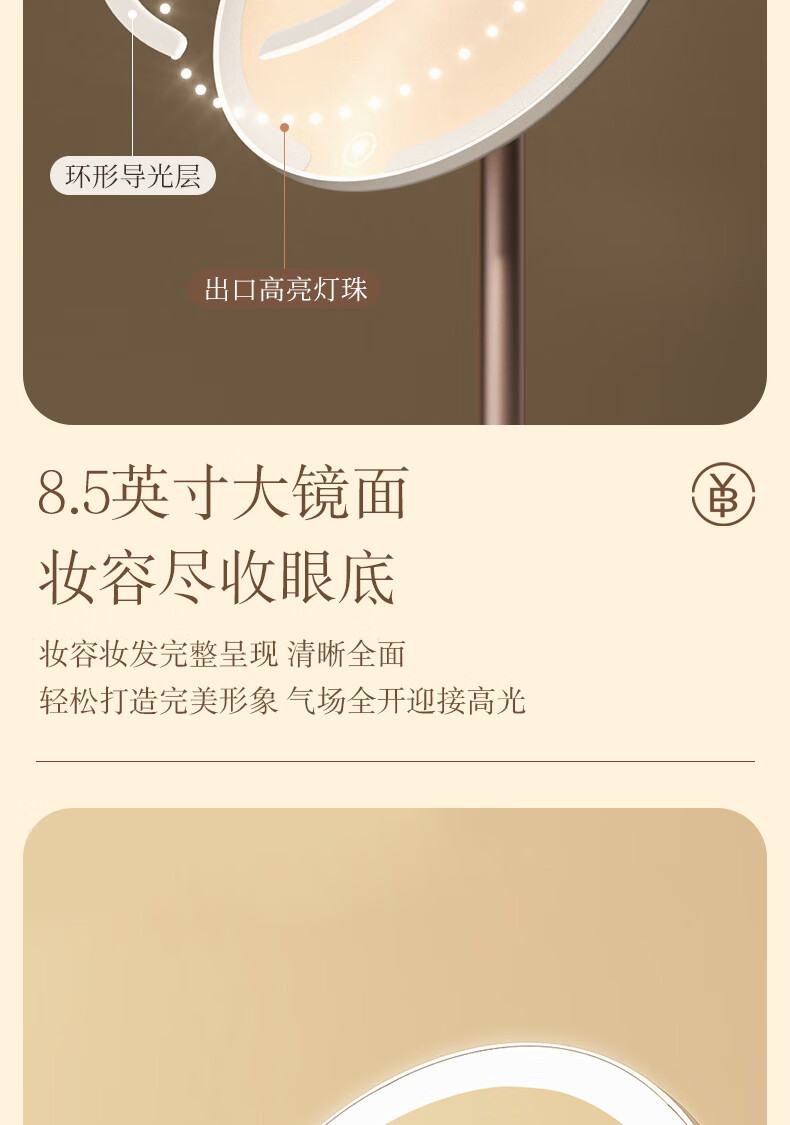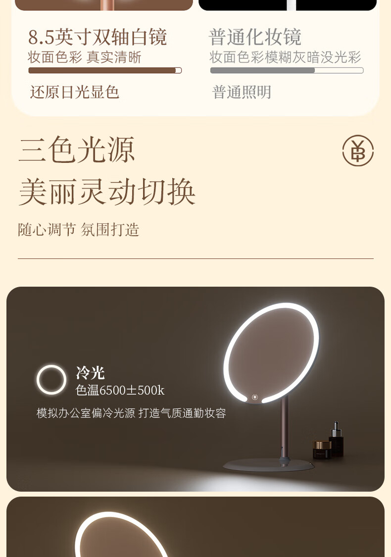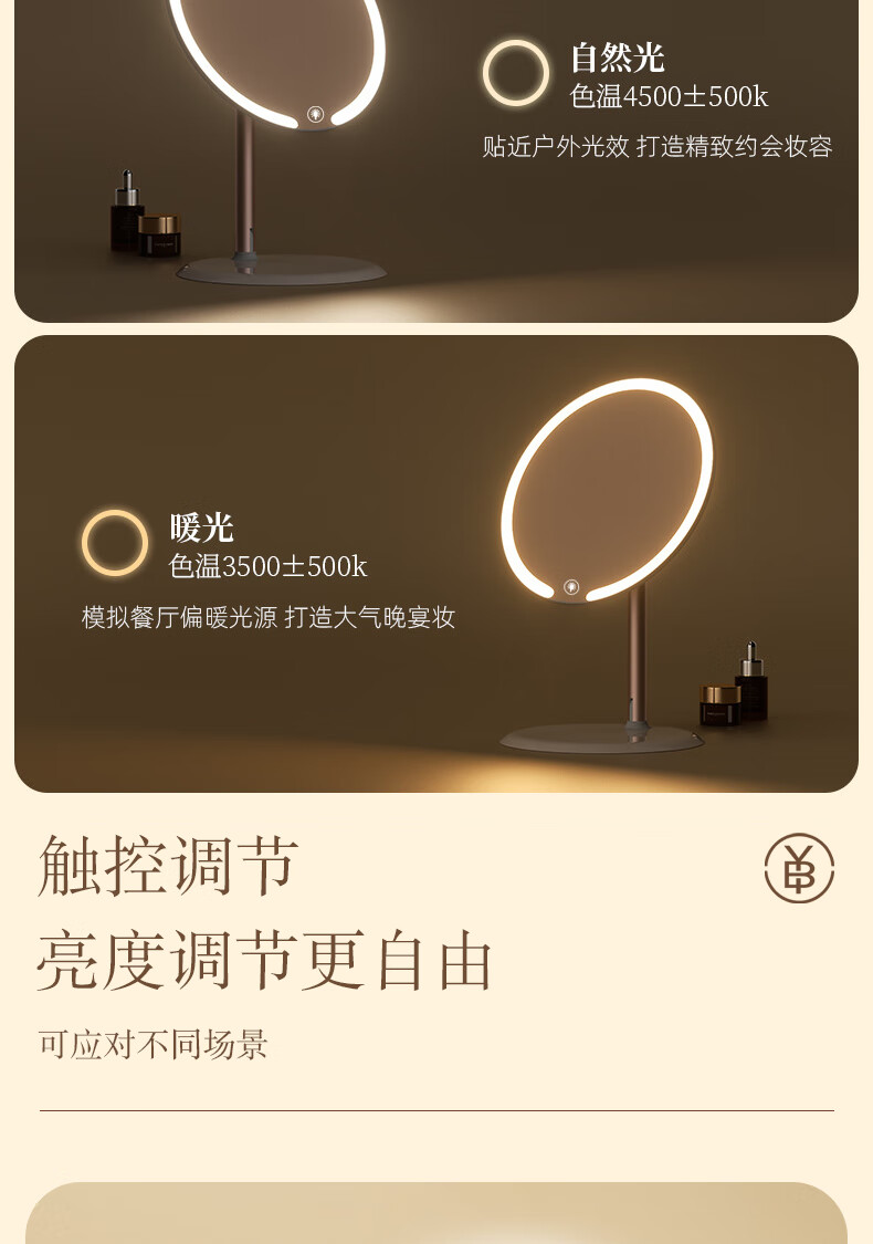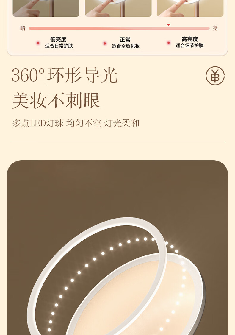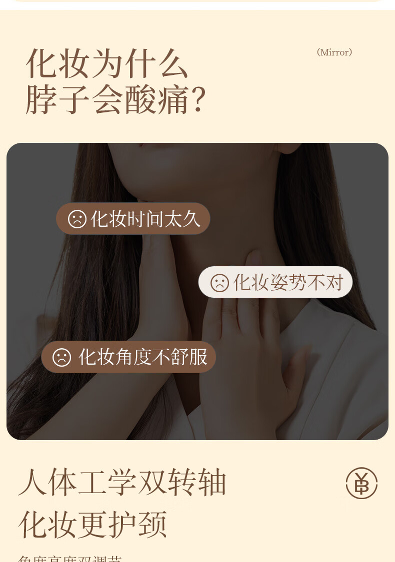 生活日用  > 日用个护工具  > 化妆镜  >  秉优  >  秉优 双轴化妆镜带灯台式桌面学生宿舍家用可立办公室led美妆镜子旋转 秉优81214210/件