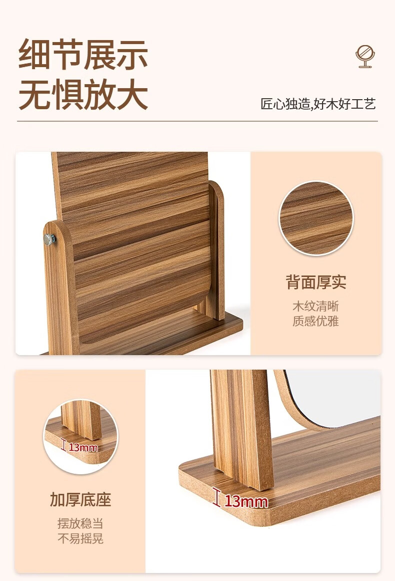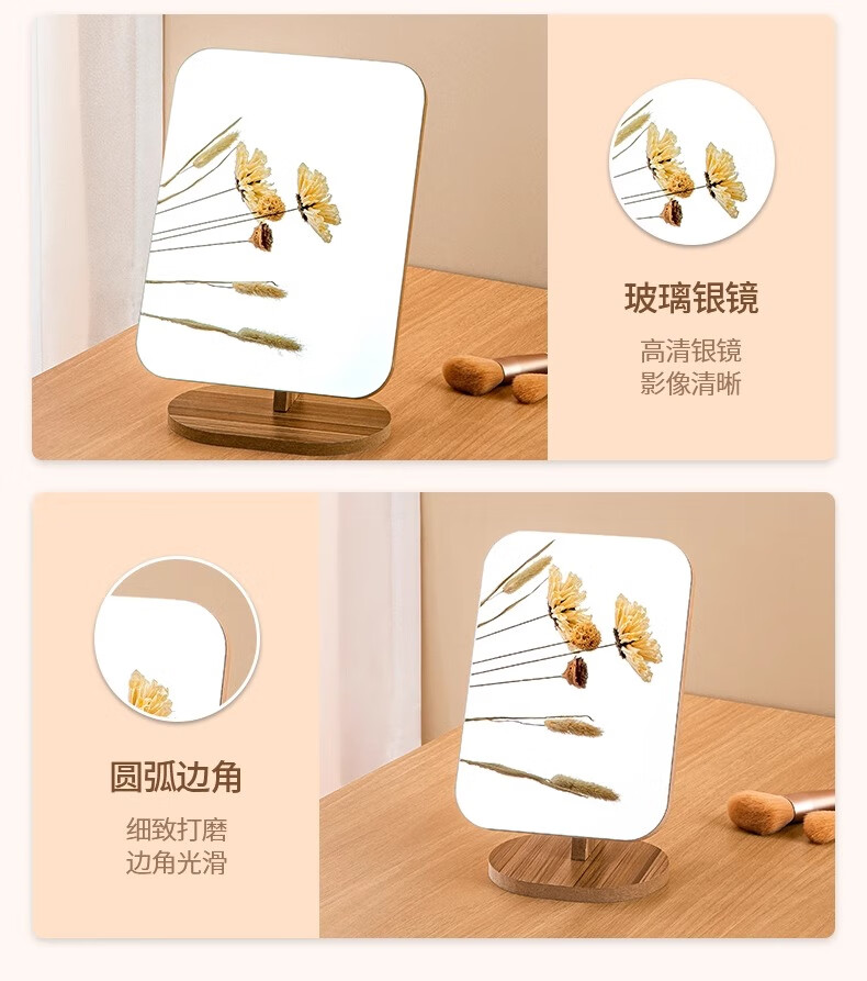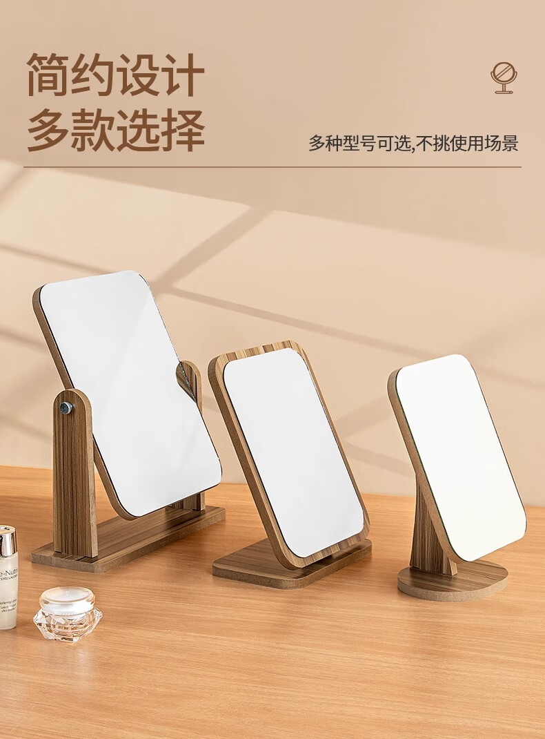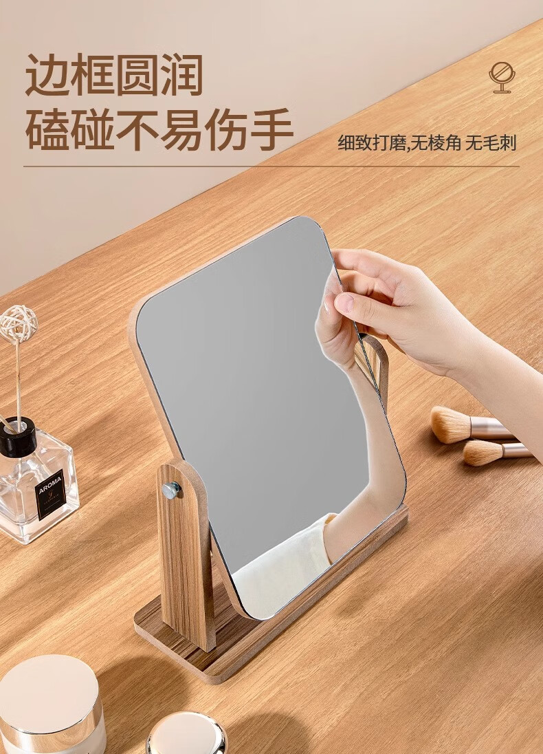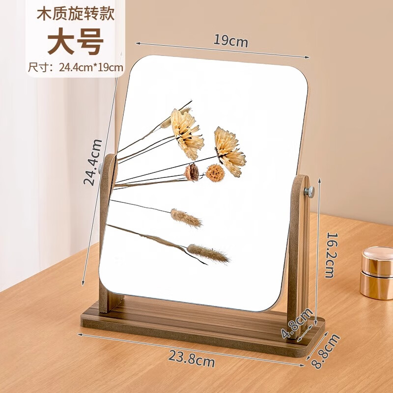 商品名称: 慕亚(MUYA) 镜子ins风化妆镜台式桌面学生宿舍木质梳妆镜办公折叠卧室小镜子 木制台式化妆镜旋转款-大号(玻璃)/个
