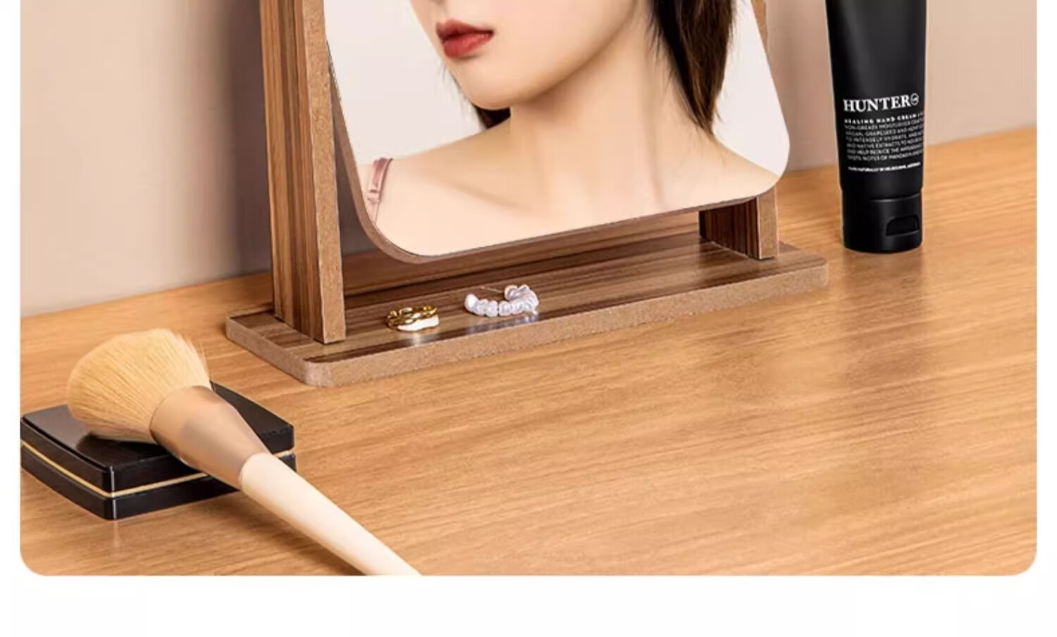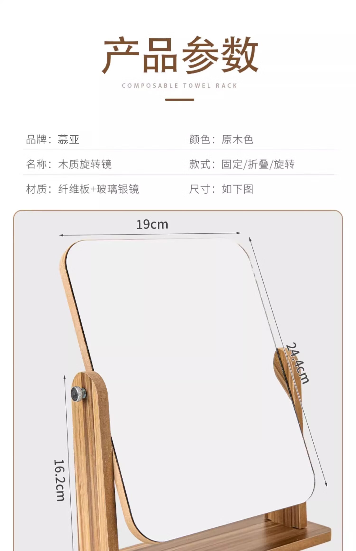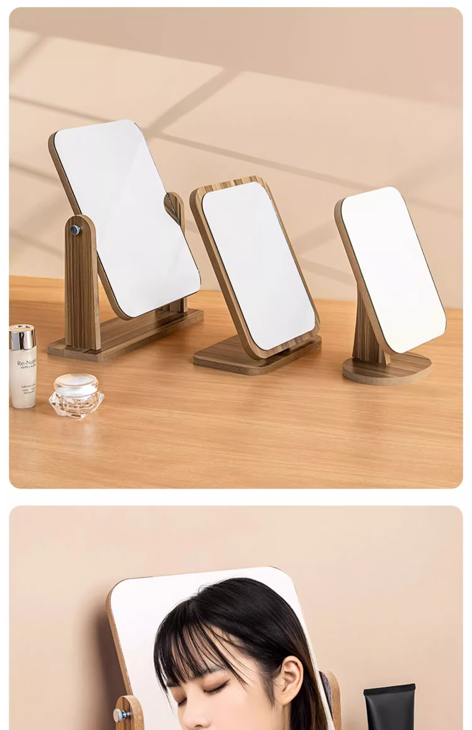 商品名称: 慕亚(MUYA) 镜子ins风化妆镜台式桌面学生宿舍木质梳妆镜办公折叠卧室小镜子 木制台式化妆镜旋转款-大号(玻璃)/个