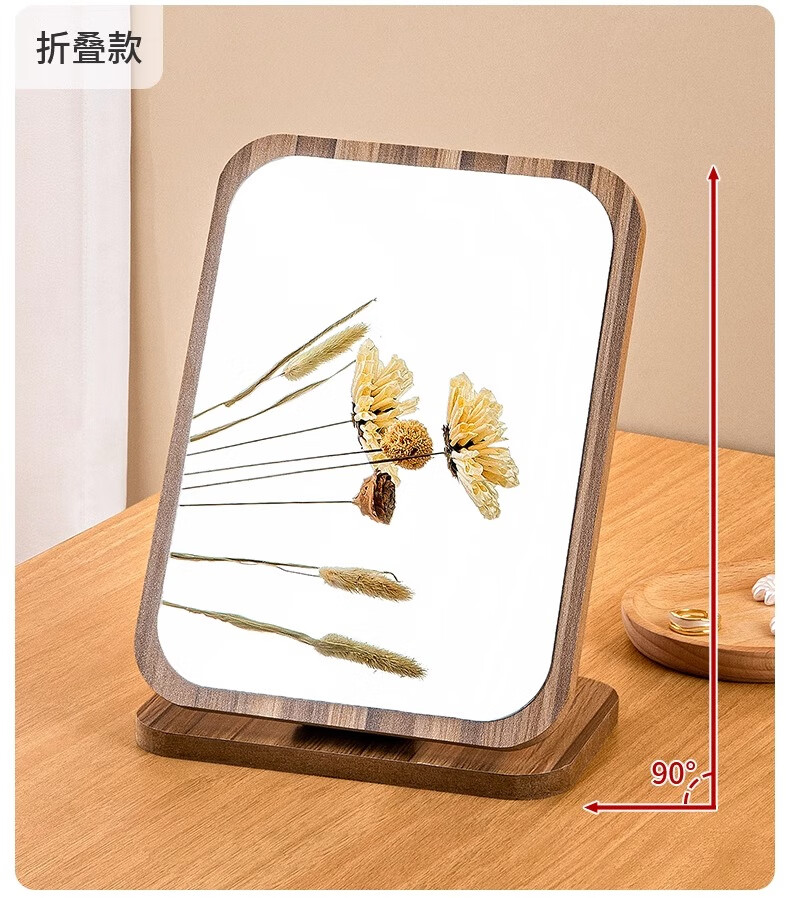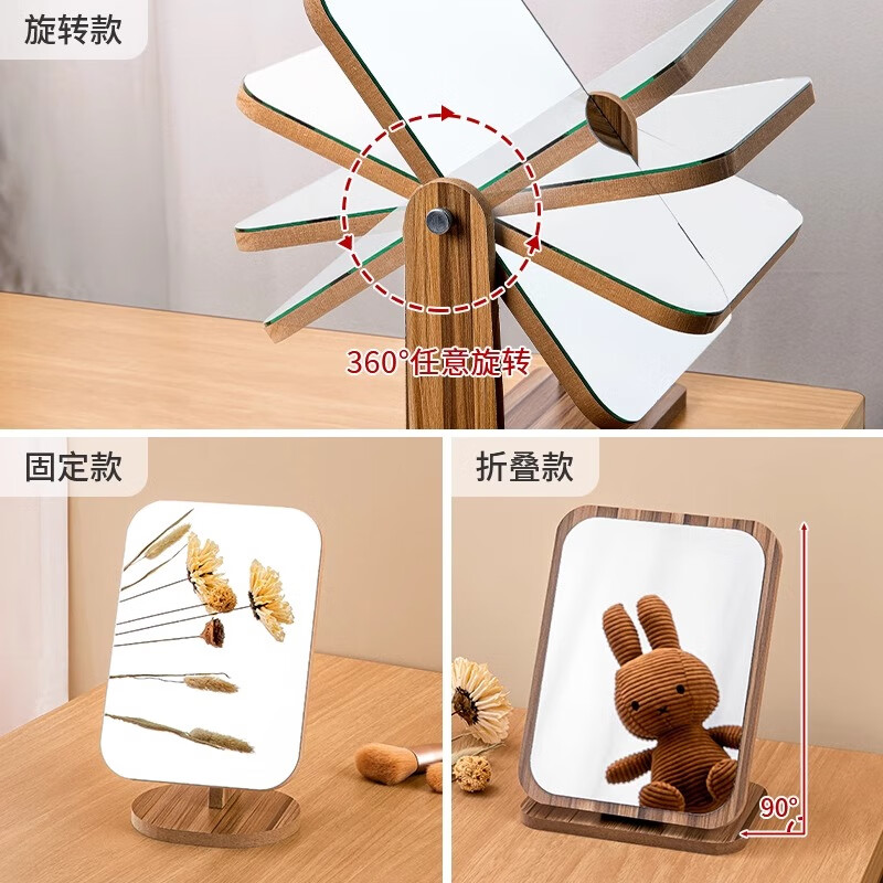 慕亚(MUYA) 镜子ins风化妆镜台式桌面学生宿舍木质梳妆镜办公折叠卧室小镜子 木制台式化妆镜旋转款-大号(玻璃)/个