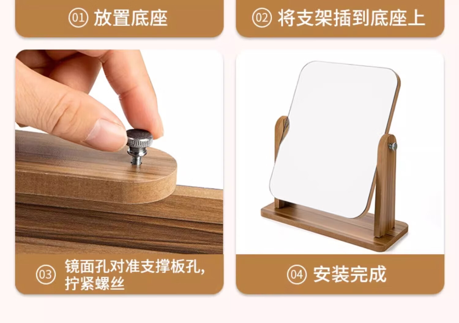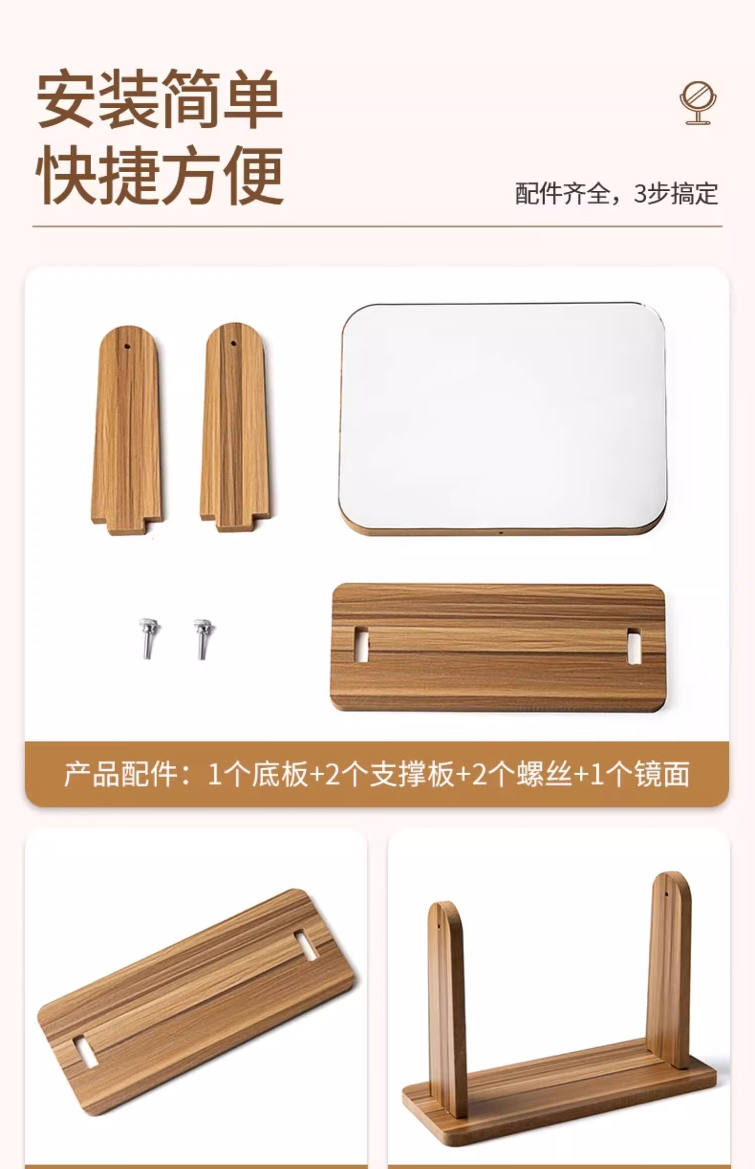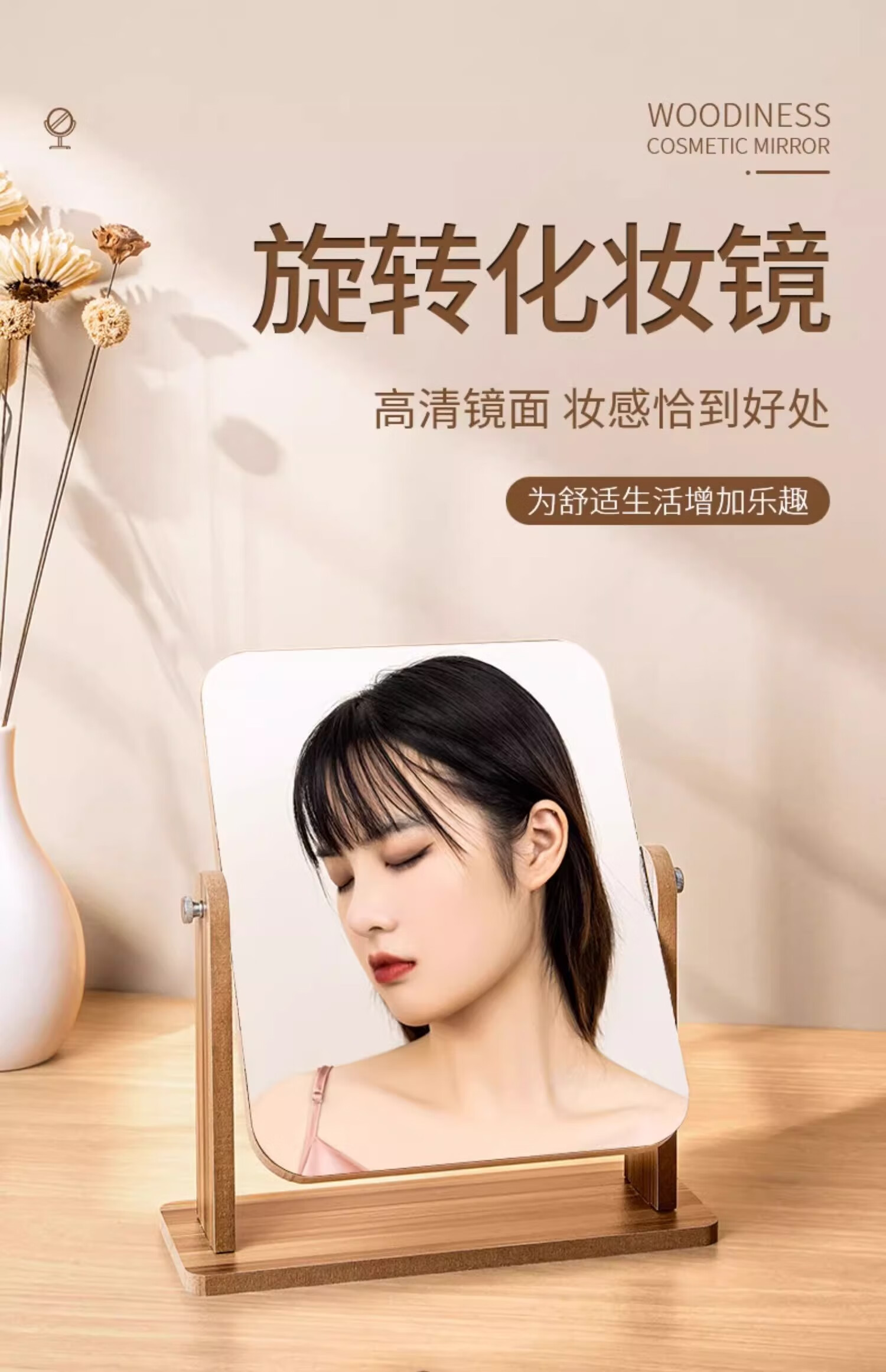 包装清单: 木制台式化妆镜旋转款-大号(玻璃)