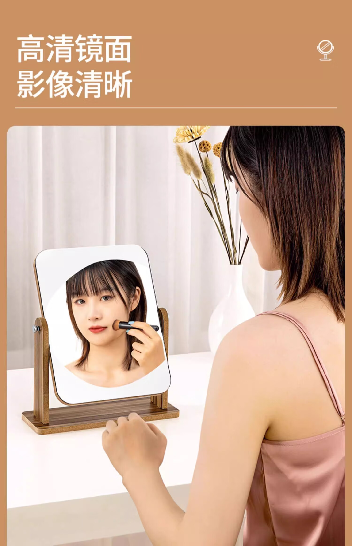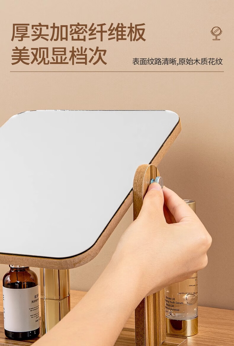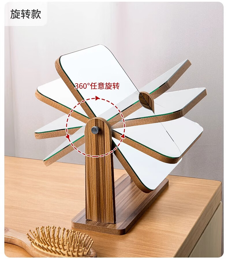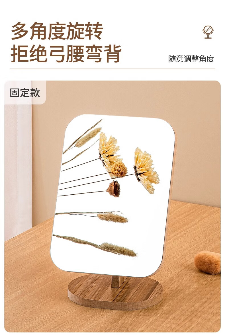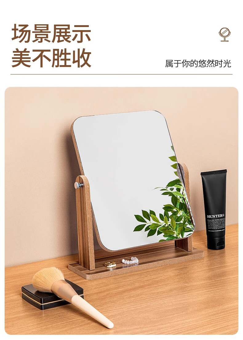 生活日用  > 日用个护工具  > 化妆镜  >  慕亚/MUYA  >  慕亚(MUYA) 镜子ins风化妆镜台式桌面学生宿舍木质梳妆镜办公折叠卧室小镜子 木制台式化妆镜旋转款-大号(玻璃)/个