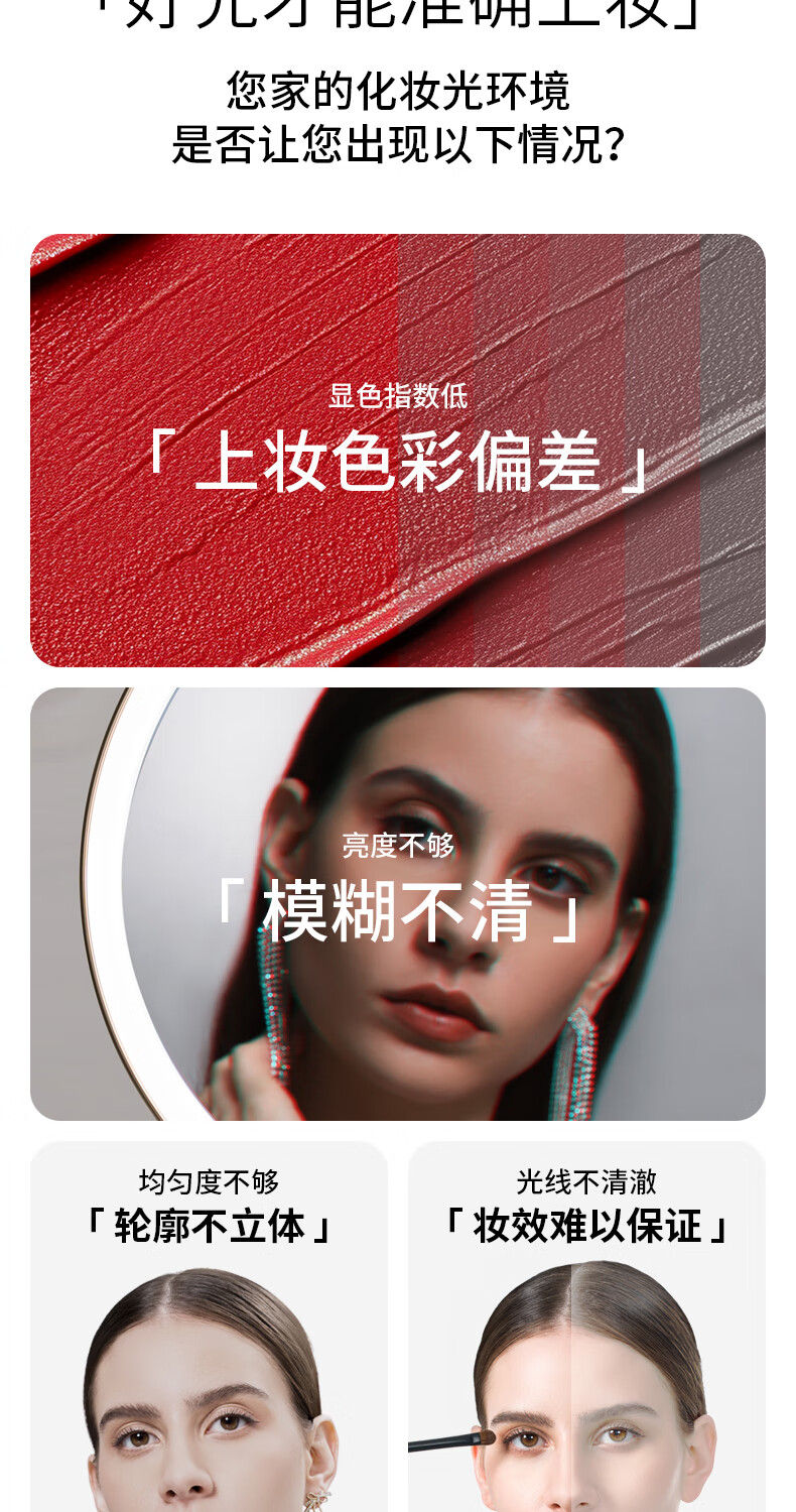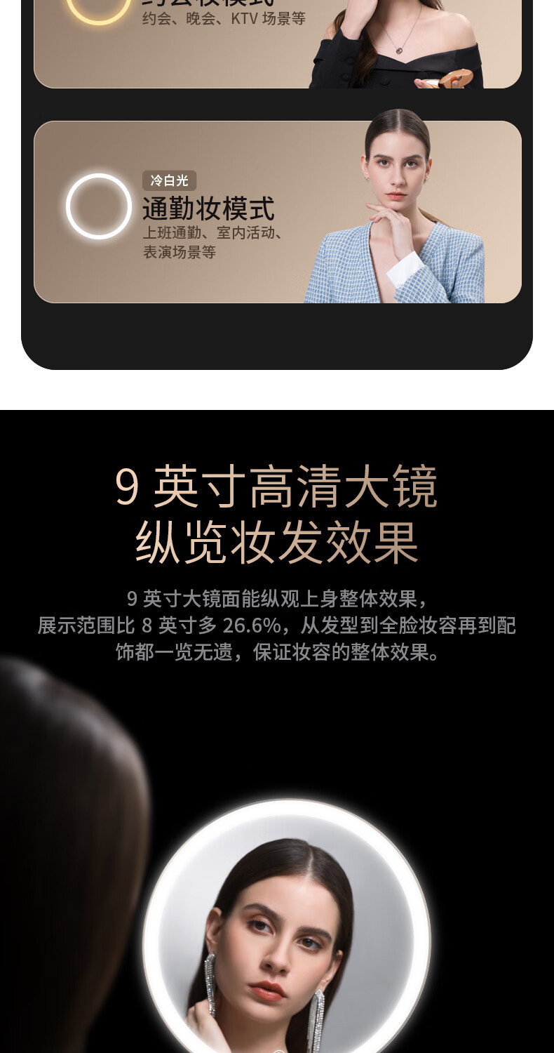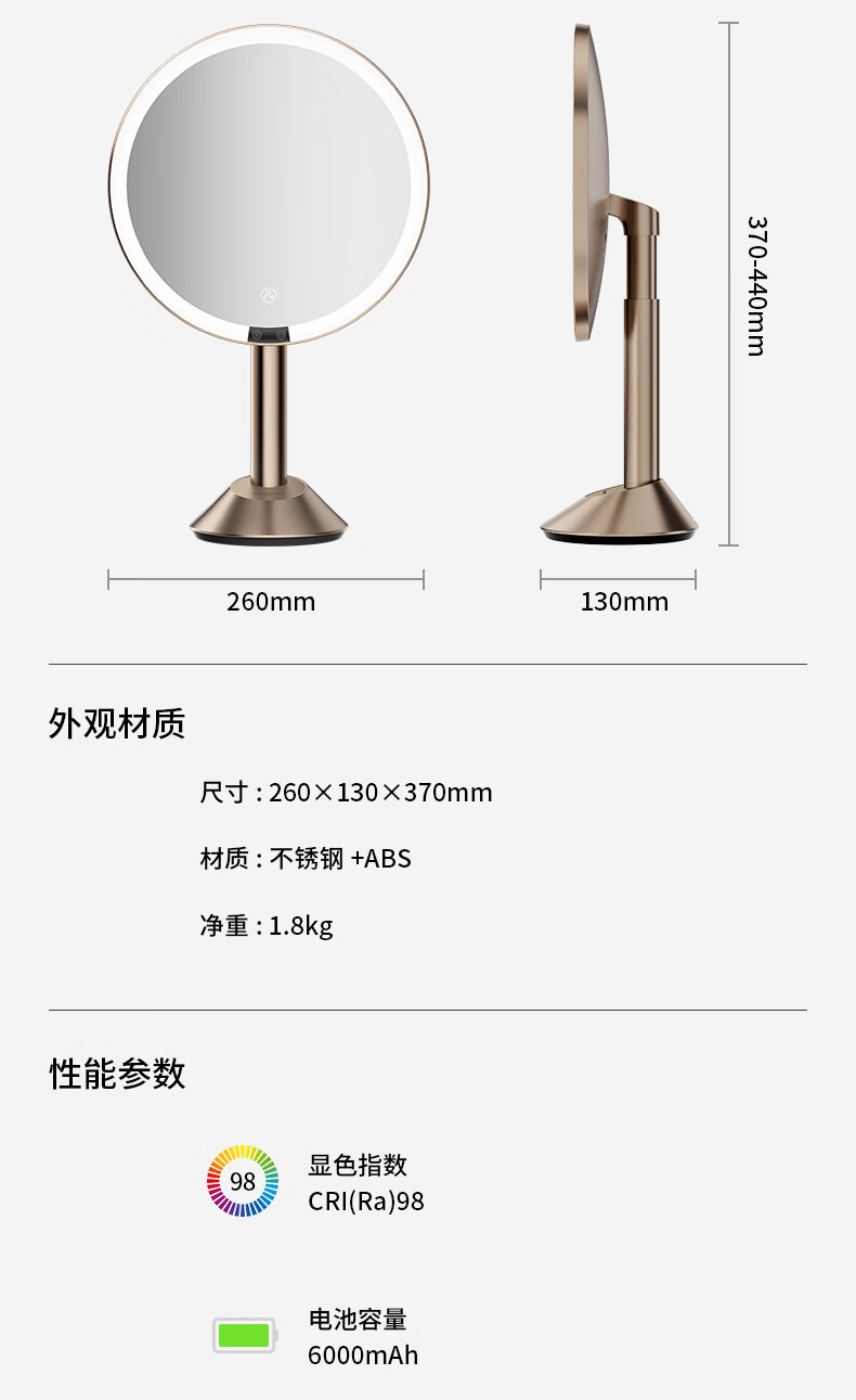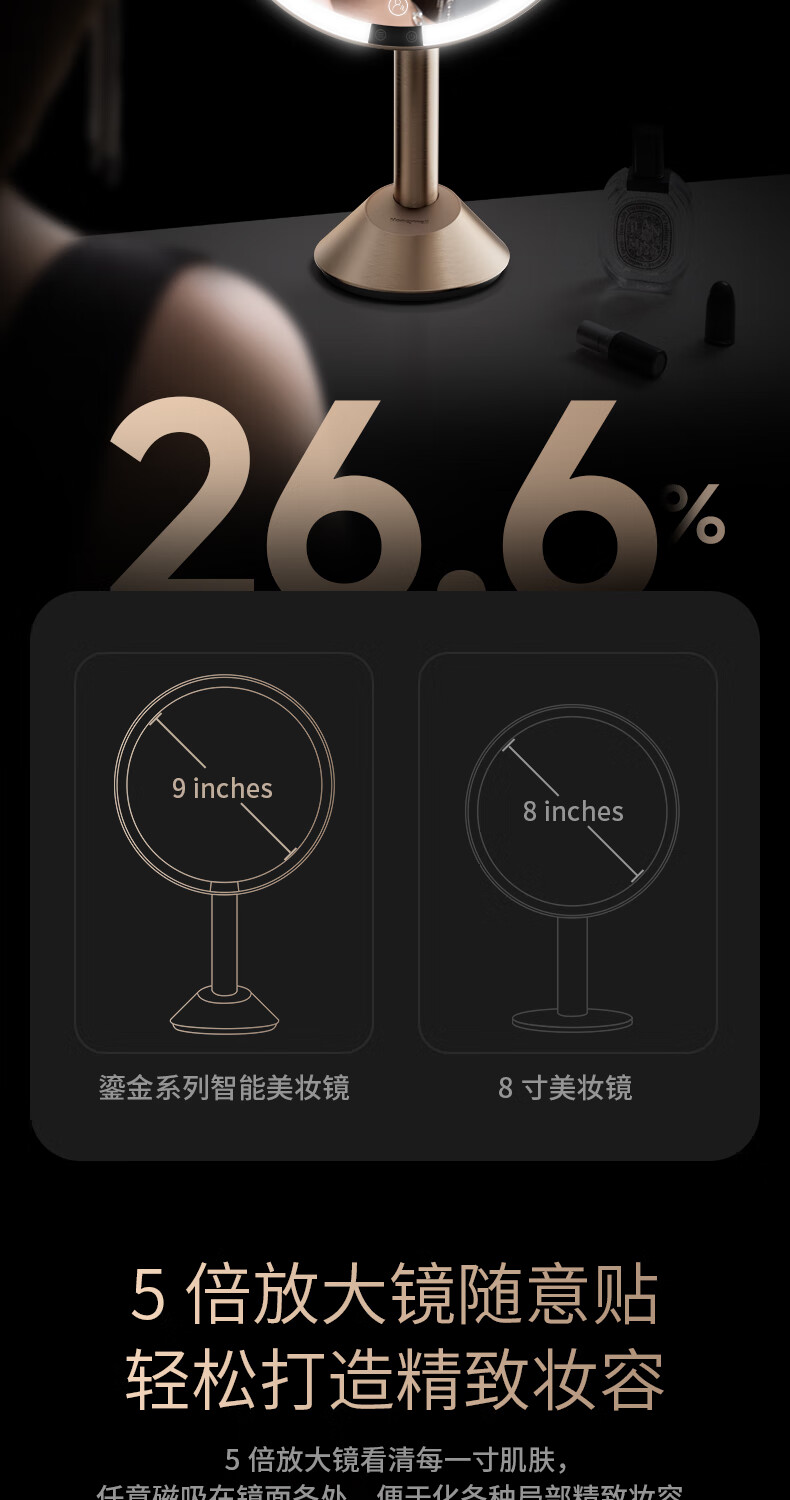 • 商品名称:霍尼韦尔化妆镜带灯卧室LED智能美妆镜梳妆台镜子生日礼物送女生女友老婆 HWV-02J03/件