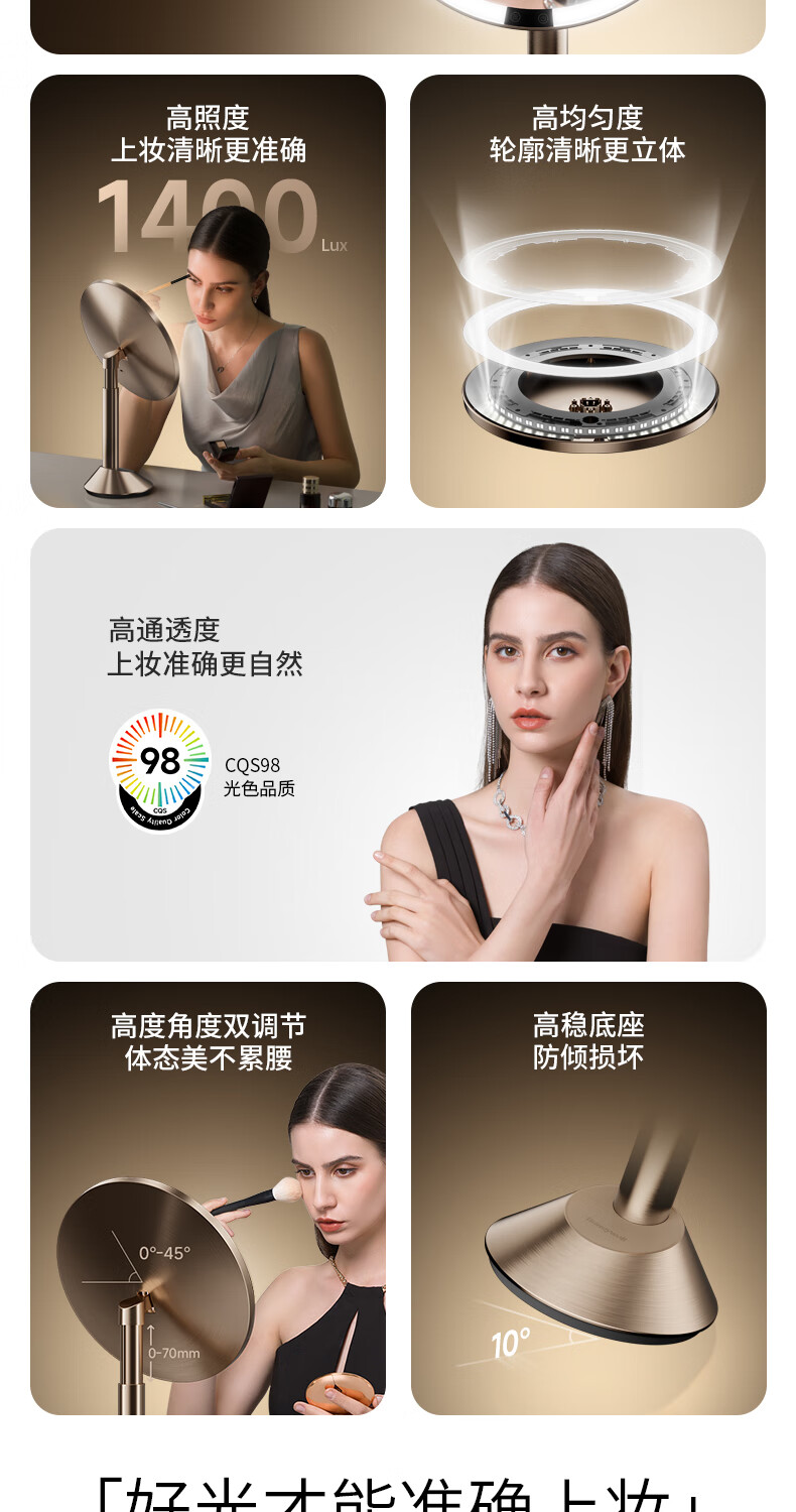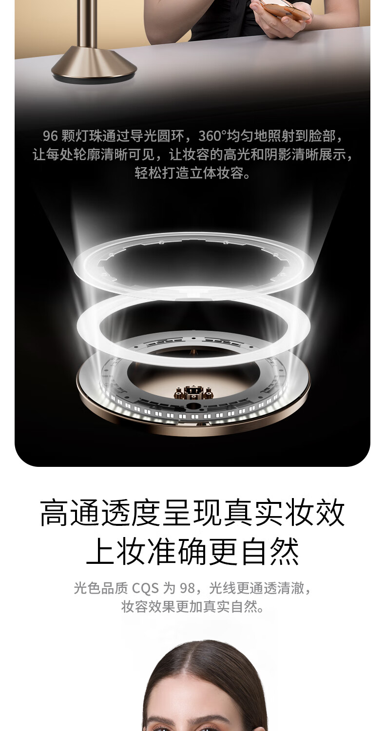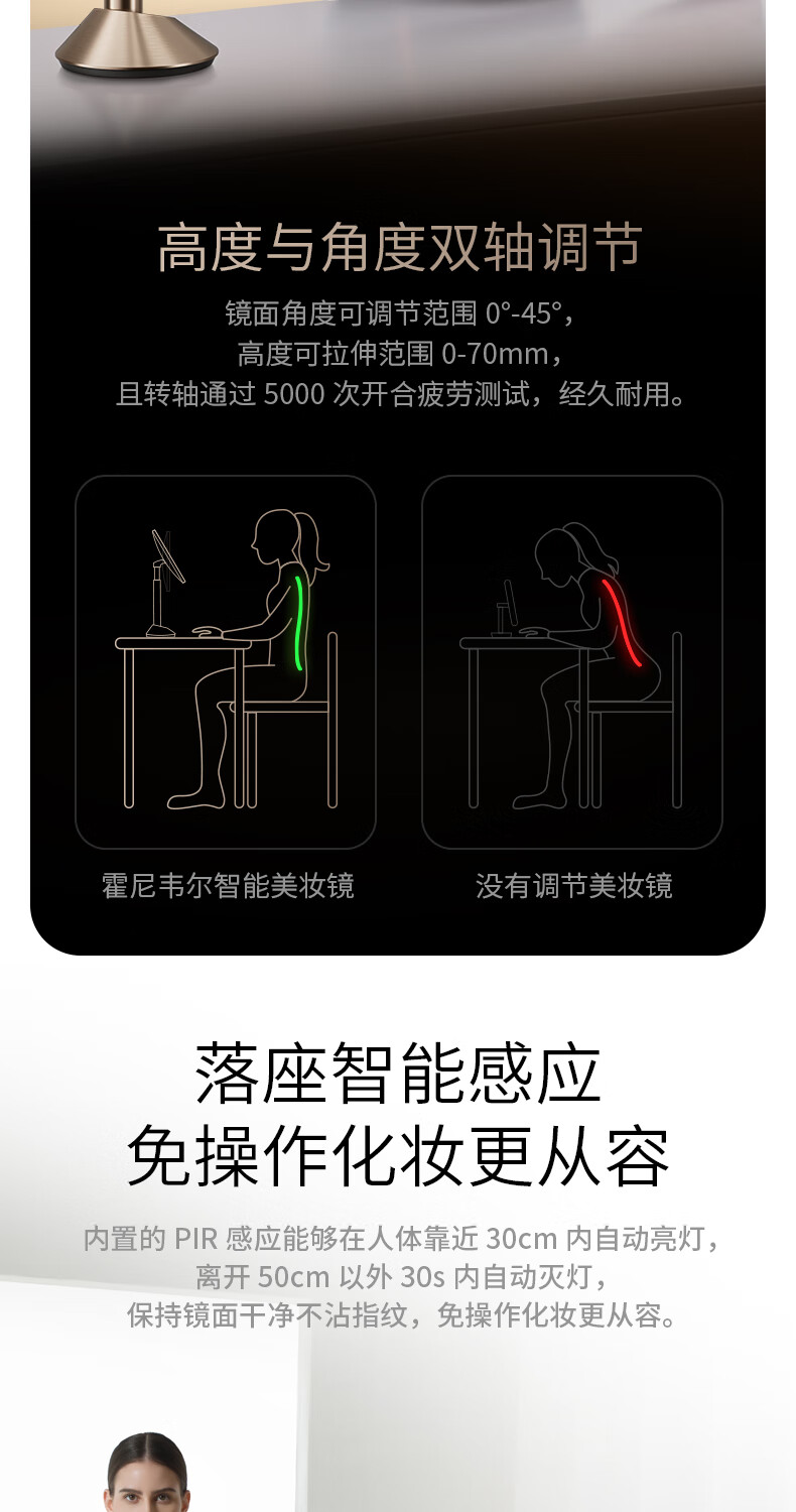• 商品名称:霍尼韦尔化妆镜带灯卧室LED智能美妆镜梳妆台镜子生日礼物送女生女友老婆 HWV-02J03/件