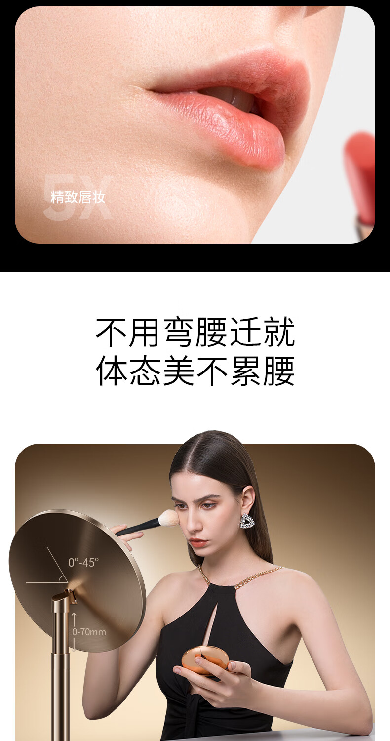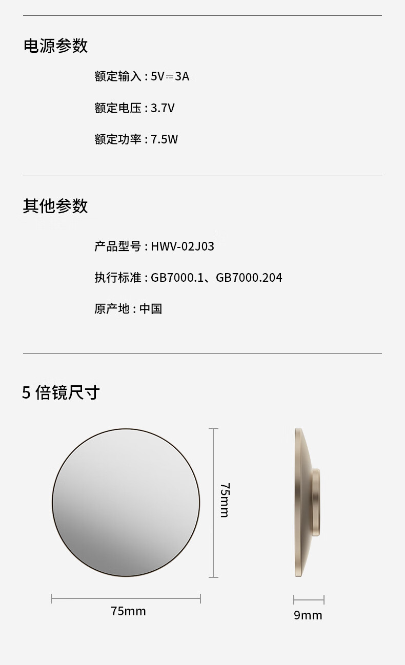 包装清单: 化妆镜灯*1,type-C充电线*1、磁吸5倍放大镜*1、擦拭布*1、保修卡*1、说明书*1