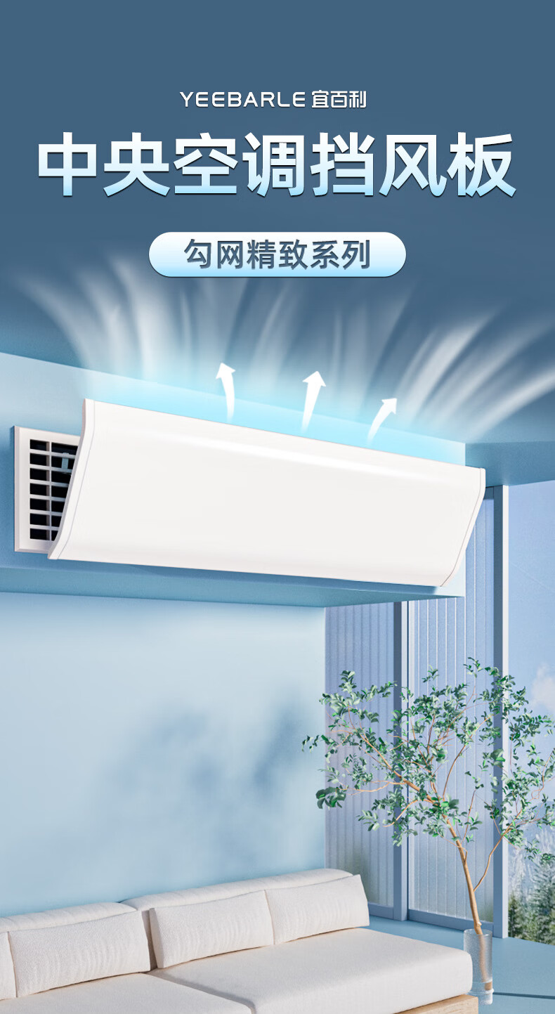 生活日用  > 日用杂货  > 空调挡风板  >  宜百利/Yeebarle  >  宜百利中央空调挡风板 防直吹全遮挡侧挂式婴儿办公40cm勾网5277yl 空调挡风板/盒