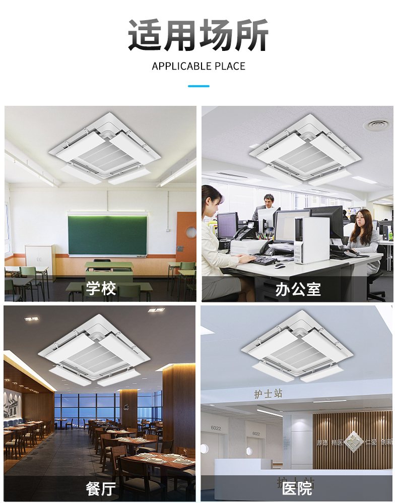 • 商品名称:小皇后 中央空调挡风板导风板风管机天花机办公室冷气出风口挡板遮风板防直吹吸顶机通用 52cm卡扣款 四面出风/个