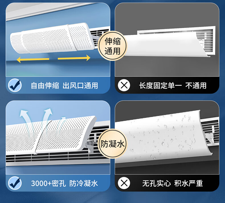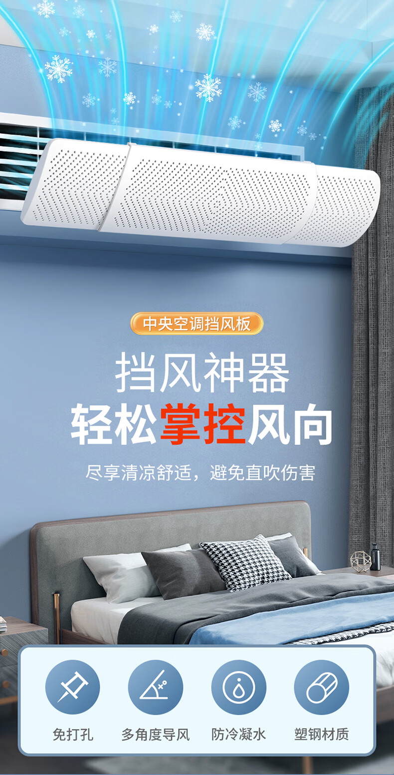 • 商品名称:小皇后中央空调挡风板出风口挡板防直吹冷暖气导风罩90-120CM滤棉款 90-120CM通用滤棉款/件