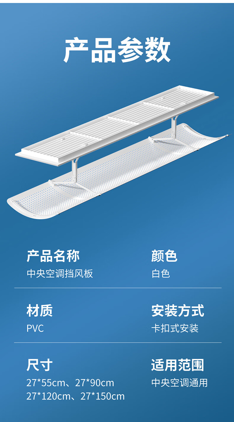 • 商品名称:小皇后(XIAO HUANG HOU)中央空调挡风板防直吹百叶出风口冷暖风遮风罩导顶侧挂通用55cm 顶侧挂通用55cm/件