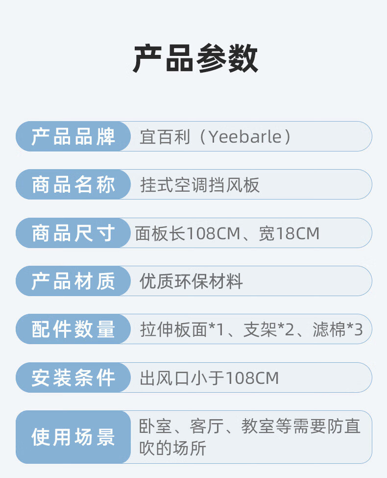 • 商品名称:宜百利 空调挡风板 防直吹挂式防风通用免安装打孔月子婴儿豪华中5033X1 空调挡风板/个