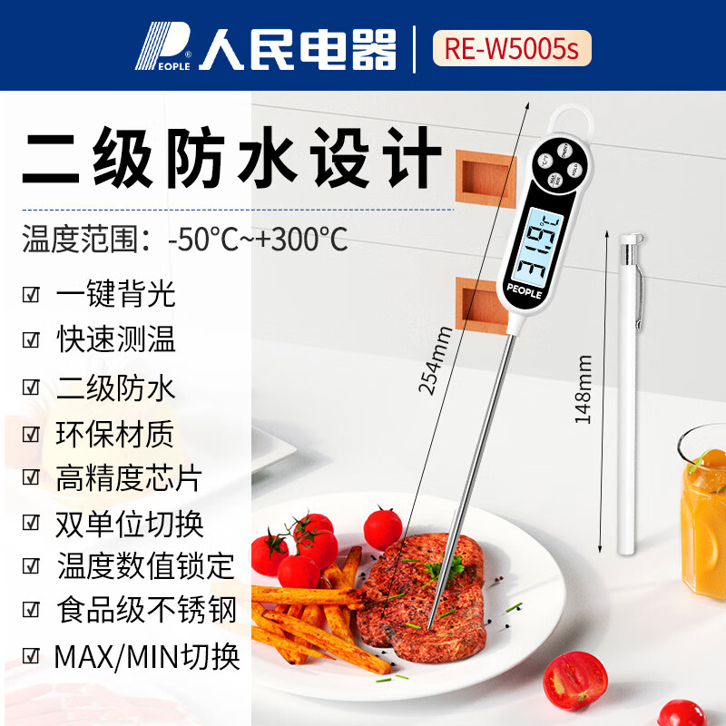 生活日用  > 日用杂货  > 温湿度计  >  人民电器  >  人民家用室内食品温湿度计室内测油温婴儿测奶温水温温度计RE-W5005S RE-W5005S/个