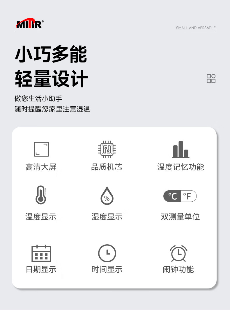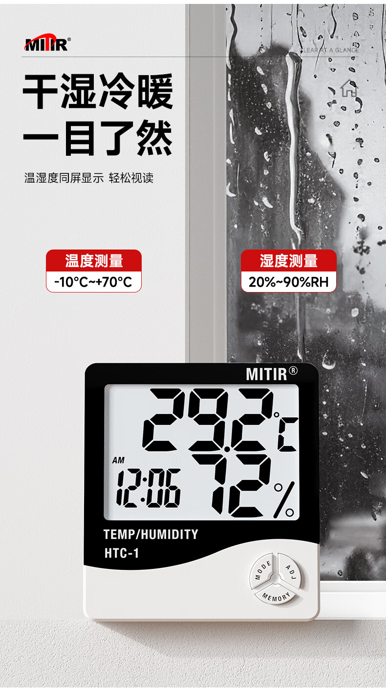 • 商品名称:MITIR 温度计室内 家用温湿度计电子室温计婴儿房温度表湿度表HTC-1 温湿度计/个