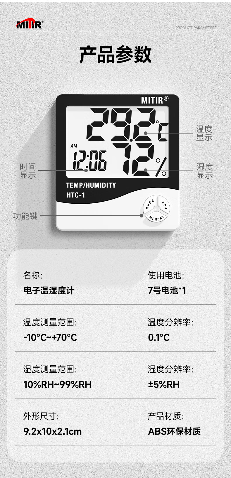 商品名称: MITIR 温度计室内 家用温湿度计电子室温计婴儿房温度表湿度表HTC-1 温湿度计/个